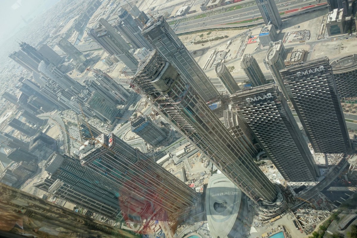 Ke vstupu do Burj Chalífy jdeme intuitivně venkem. Ovšem intuice nefunguje. Dovnitř nejvyššího mrakodrapu světa lze samozřejmě vstoupit pouze skrze Dubaj Mall – největší nákupní centrum světa. Máme vstupenky na přesný čas, dovnitř je pro návštěvníky omezená kapacita. Úvodní fronta ke kontrole vstupenek je asi OK. Ne tak dalších deset nekonečných front do budovy a k výtahu. Organizace vstupu pro návštěvníky je absolutně nezvládnutá. Trvá více jak hodinu, než se konečně dostáváme výtahu a je úplně jedno jakou rezervaci máme. Nahoře zlost opadá. Výhledy jsou pěkné a lze vystoupit na venkovní terasu. Z té je vidět nejen dolů z výšky vysoko nad okolními věžemi, ale také nahoru, kde vnímáme zbývajících 350m Burj Chalífy nad námi.