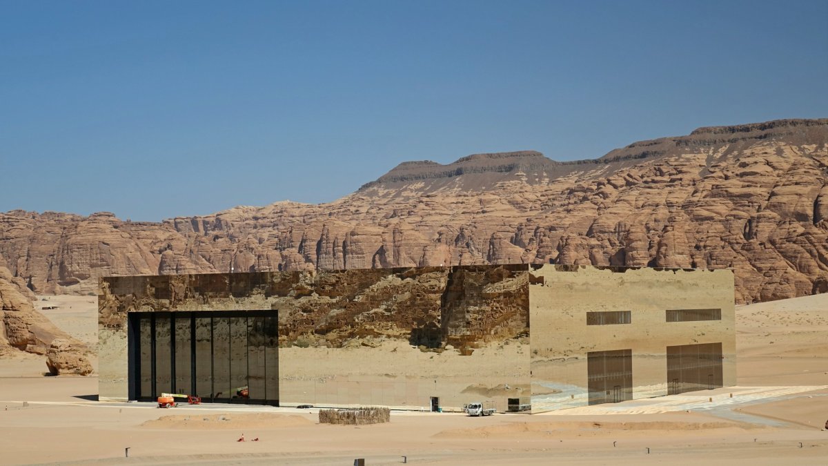 Máme štěstí na řidiče. Fajsal je mladý muž s velmi pohnutým osudem. Na kraji asfaltu ufoukne pneumatiky a veze nás pustinou ke stavbě jménem Miraja. Bez rezervace nás do údolí nepustí a rezervace na dnešek udělat nejde, protože je zavřeno. Netrváme na návštěvě, chtěli jsme to jenom zkusit, ale Fajsal je neoblomný. Zkouší to stále dokola. Googluje telefonní čísla a někam volá. Po pěti minutách se brána otvírá a my jedeme pustinou kolem stáda velbloudů k Miráji. To je největší zrcadlové stavba na světe umístěná v poušti mezi skalami. Zní to jako úplná blbost, ale vypadá magicky. Neviditelně. Jako fata morgana. Je čas vyzkoušet, co umí Evropan. Fajsal se baví tím, jak málo jsem schopný přemluvit údržbáře, aby nás pustil dovnitř. Řekl mi, že dovnitř NESMÍME. A já to tak pochopil. Né však Fajsal. Jde na to po svém. Přemlouvá sekuriťáka, opět někam volá a za chvíli jsme pozvaní dovnitř. Těžko uvěřitelné. Snažím se něco vyfotit, což obsluhu zaujme a bere nás do v.v.i.p. lóže, kde je nejlepší výhled. Opět těžko uvěřitelné. Luxusní koberec s pěticentimetrovým hustým vlasem zašlapáváme pískem z našich sandálů. Ale nikomu to nevadí. Vracíme se zpět na silnici a Fajsal opět hustí pneumatiky. Vítejte v tradičním království 21. století.