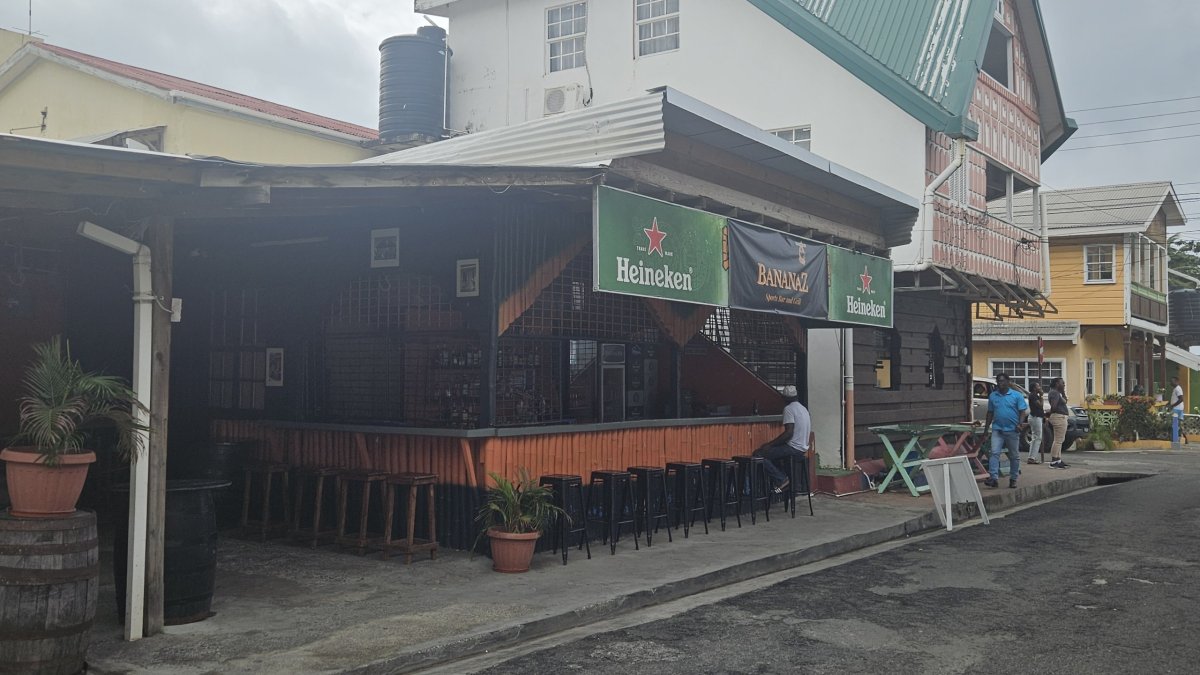 Večer využíváme další výhody polohy našeho ubytování, neboť hned vedle má místní maník zde typický bar/restauraci. Dřevěná budka a zastřešené sezení, židle a stoly posbírané kde co. Nabízí ale denně několik domácích jídel za ceny od 18 XCD (136 Kč), my zkoušíme čerstvou rybu s fíkovým salátem (vynikající, obdoba našeho bramborového) a k tomu ještě nějaké domácí dezerty. Za naprosto bombastickou večeři i s pitím a spropitným platíme 150 XCD (1.140 Kč). Zažíváme zde i hlášku roku – když si objednám nějaký domácí dezert, až pak zjišťuji, že jde o něco flambovaného. Maník se to ale opakovaně snaží bez úspěchu zapálit. Pak odbíhá a vrací se smutný se slovy „Alcohol is finished!“ Když reaguji „Oh my God, that is the end of the world!“, tak amíci u vedlejšího stolu padají smíchy ze židlí ...