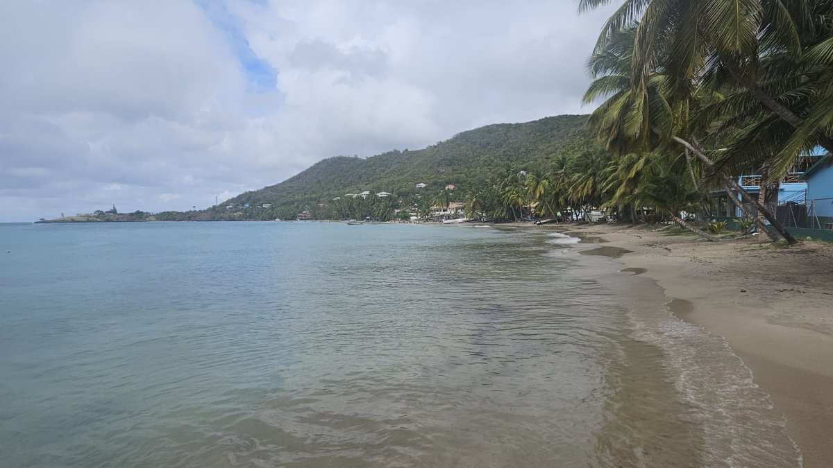 Bohužel, počasí nám nepřeje, je zataženo, mraky se honí a hrozí nějakou sprškou, takže to ke koupání a využití přednosti našeho ubytování vůbec neláká. Sedáme proto do auta a jedeme na jižní výběžek ostrova – Cape Moule-á-Chique, kde nás na konci cesty čeká dnes již nefunkční maják a výhled na celou jižní polovinu ostrova, letiště i Vieux Fort. Vidíme i přírodní symboly ostrova, oba vrcholky sopečných Pitonů. Když se pokocháme výhledy, sjíždíme dolů přes Vieux Fort na pláž Anse des Sables, která je pod letištěm. Zde se jen projdeme, počasí na koupání není.