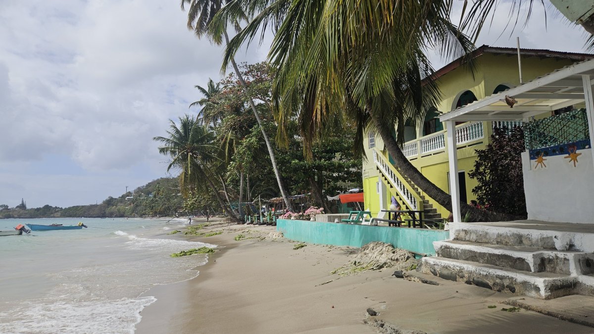 Vracíme se na ubytování, s vychlazeným drinkem na terase přepínáme do karibského cestovatelského módu a užíváme si večera za šumění vln přímo pod námi. Seznamujeme se s naším spolubydlícím z vedlejšího apartmánu, kanadským důchodcem, který tu jezdí už několik zim. A díky němu pak poznáváme i spoustu místních, kteří prochází po pláži kolem naší terasy a s naším sousedem se zdraví a každý prohodí pár vět, všichni se zajímají, odkud jsme, ale většině Česko nic neříká.