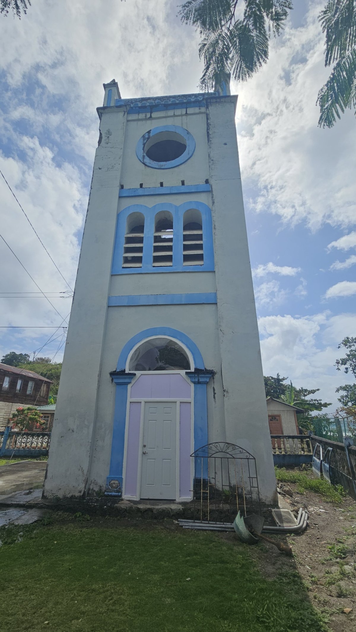 Další den je počasí o něco lepší, ale pořád nic, co by lákalo skočit do moře, které má asi 27 stupňů. My sedáme do auta a vyrážíme z Laborie po západním pobřeží prozkoumat tuto část ostrova. První kilometry jedeme opět po jediné páteřní okružní silnici až do Choiseul, což je menší vesnice, jíž dominuje velký kostel s externí zvonicí. Zde zrovna mají místní brigádu a uklízí jej, možná připravují na nějakou akci. My si vesnici procházíme tam a zpět (na jejím konci se chystá stavební projekt pláže s parčíkem) a zvykáme si na bezprostřednost místních lidí, kdy někteří (navátí bůhví čím, je sobota) se námi málem chtějí objímat.