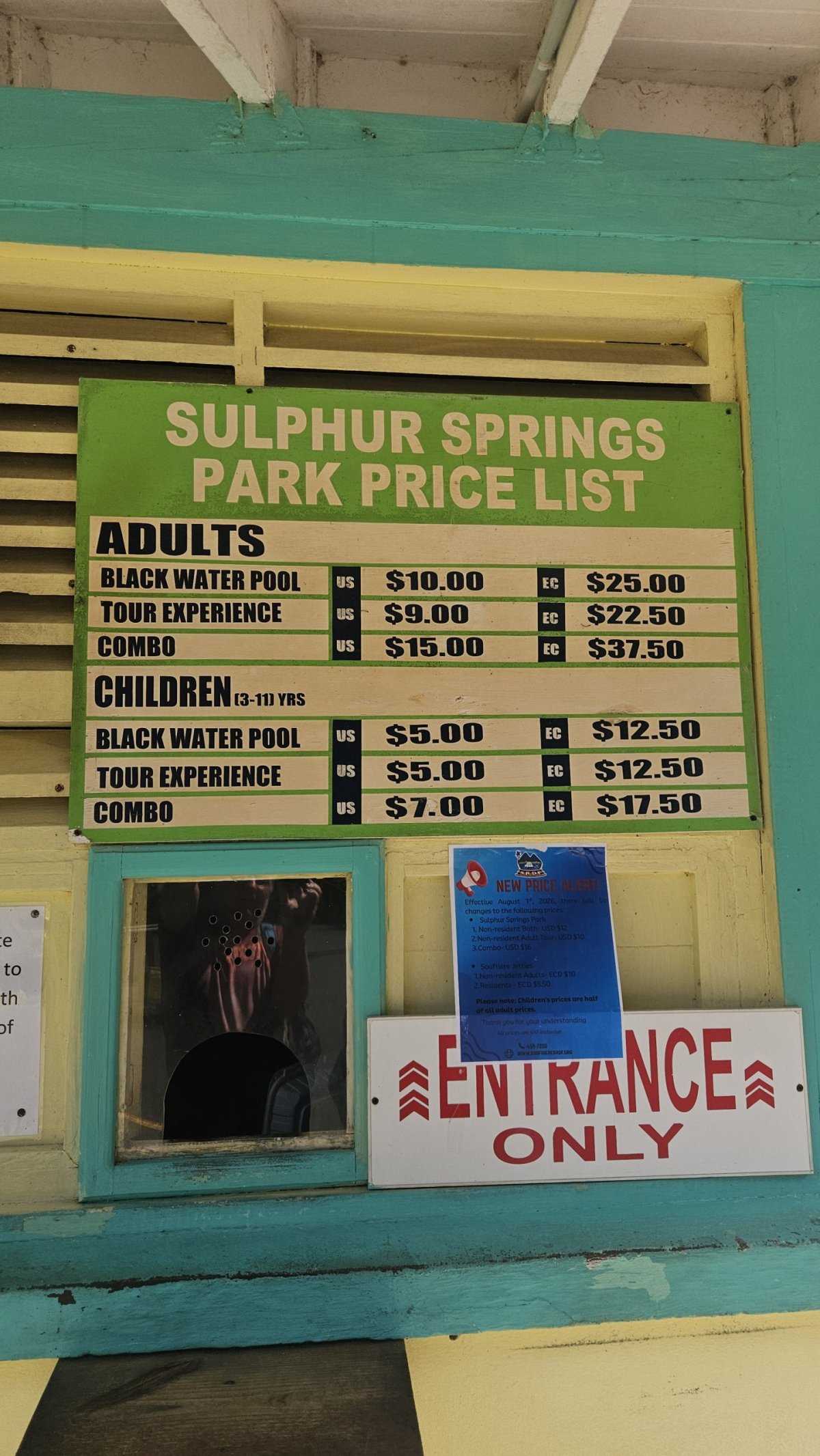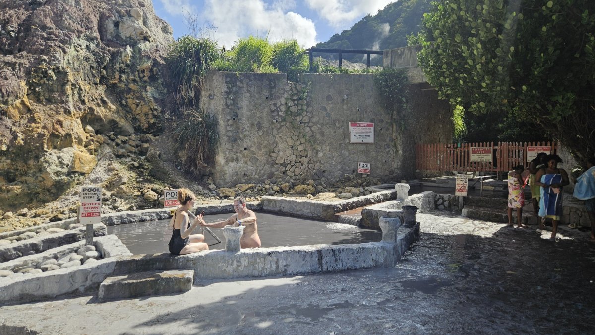 S návštěvou tohoto místa se pojí i jedna naše historka, která nám bohužel potvrdila, že místní jsou (v Karibiku), když vezmeme těžce převažující populaci, tzn. potomky afrických otroků, slušně řečeno – hloupí. Když jsme došli k horní části areálu s platnou vstupenkou, z nějakého důvodu ji tam chtěli znova vidět. A byl neskutečný problém, že nám ji na kase neorazili razítkem. Jak to máme vědět a k čemu jako? Máme se prý vrátit půl kilometru na bránu a nechat si je orazit. Tvl, jako proč? To tam neumí něco napsat, když už je to takový problém? Paní nám lístky na přímluvu kolegy nakonec jen zabavuje s tím, že až si prohlédneme sirné prameny, máme si je u ní vyzvednout. Logika pláče.