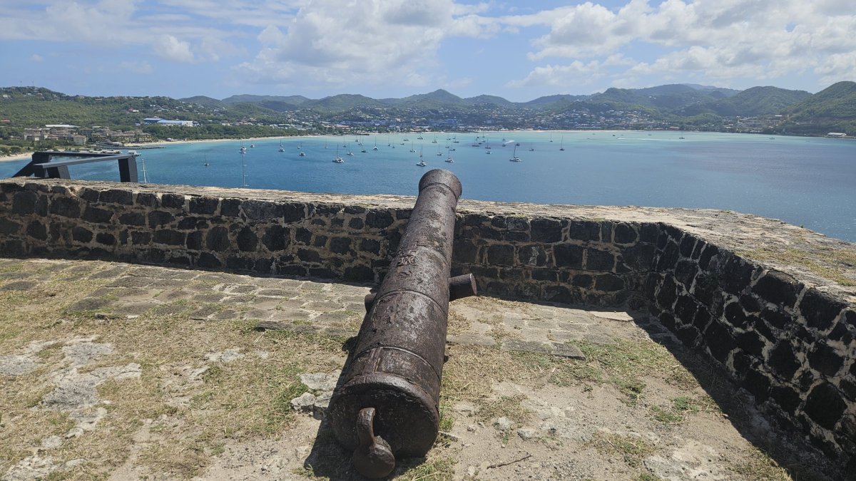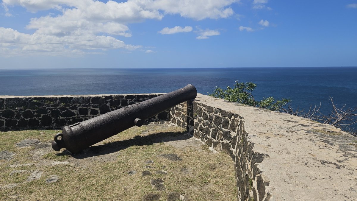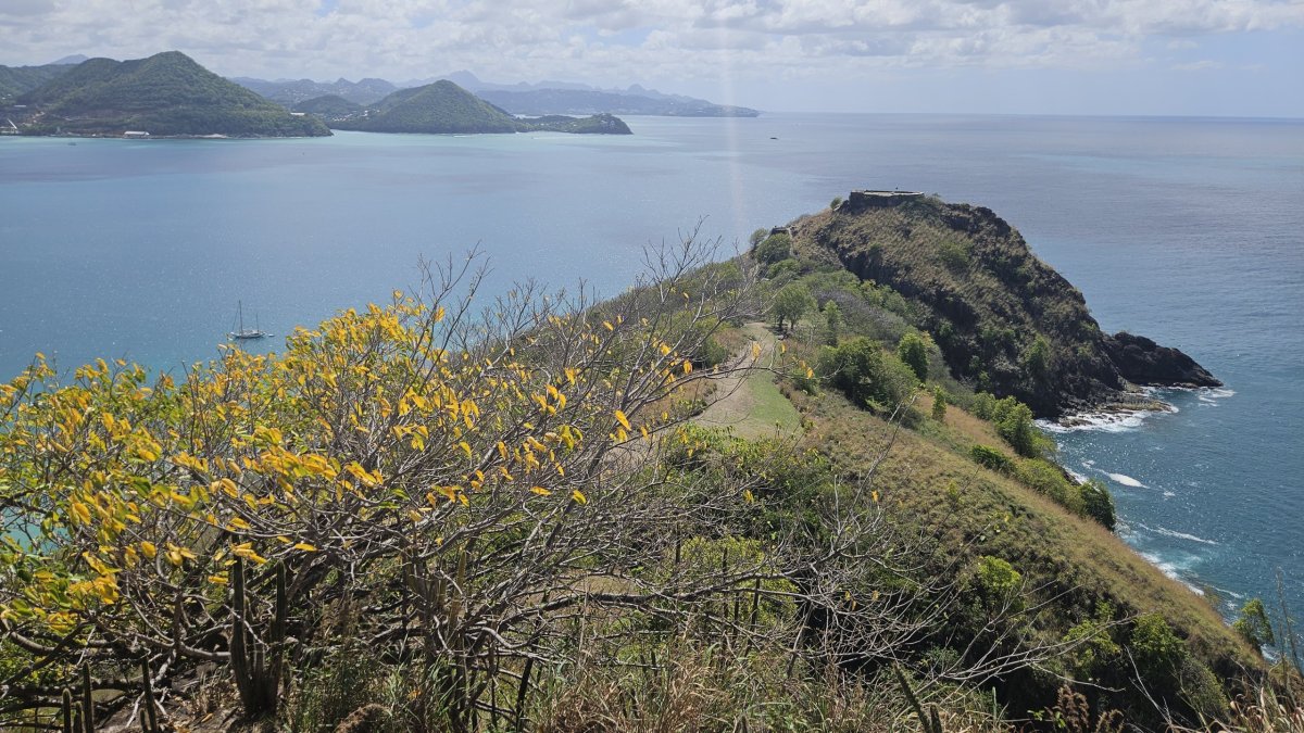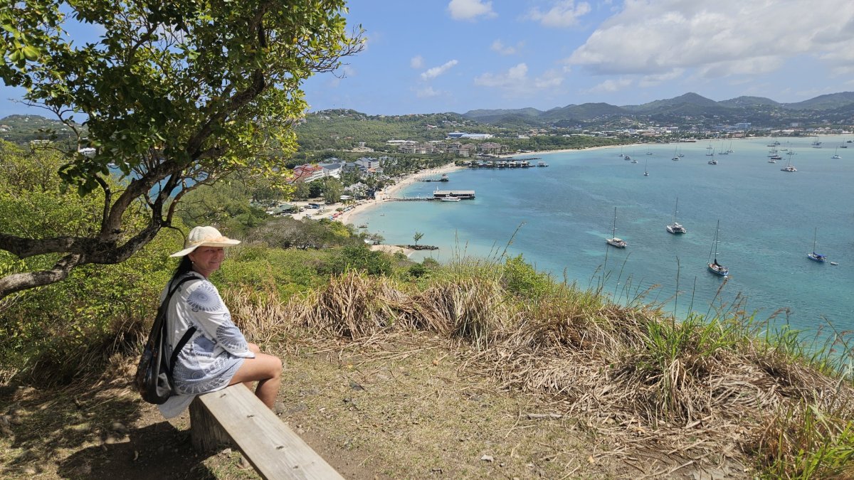 Další den vyrážíme prozkoumat asi jedinou historickou památku na ostrově – Pigeon Island. Vstupné je 27 XCD (205 Kč). Celá lokalita, malý poloostrov se dvěma vrcholy, je dnes udržovaný park, ve kterém jsou rozesety staré muniční sklady a budovy bývalé pevnosti, většinou jde o ruiny, pouze několik budou je zrestaurovaných nebo kompletních. Na samotném cípu poloostrova je na vrcholu malá pevnůstka, která až do roku 1947 sloužila jako vojenská radiostanice. Po úzkém hřebenu se pak přesunujeme k druhému vrcholu poloostrova – Signal Hill, ale na ten jinde a jindy asi nenáročný výstup v otevřeném terénu, po tmavých kamenech a pod přímým tropickým sluncem ve finále vzdáváme, vedro je dnes skutečně šílené.