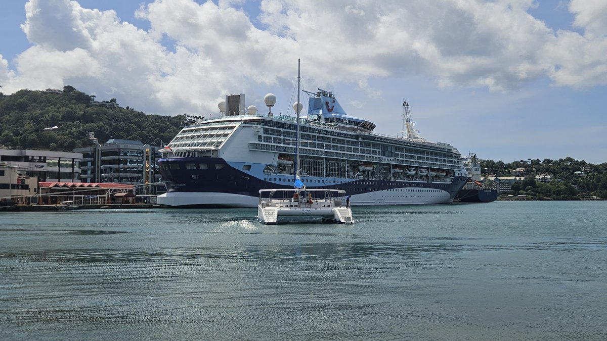 Tam se chystáme další den, záměrně zde podobně jako u jiných ostrovů volíme sobotu, kdy předpokládáme menší provoz i chaos v centru. To bohužel částečně neplatí, protože cestou z ubytování do hlavního města ostrova opět skáčeme místy v pomalých kolonách. Tam parkujeme na severu města, kousek od letiště. Kolem moderních budov, sídel ministerstev, vládních úřadů, bank a pojišťoven jdeme do historického a obchodního centra Castries, které tvoří pouze několik bloků, přitom pozorujeme dvě výletní lodě kotvící v malém místním přístavu. Město je tak dnes i díky tomu plné lidí, i když místní mají samozřejmě mnohonásobnou převahu.