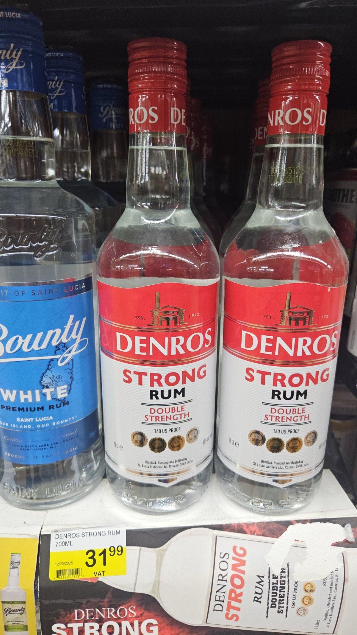 Rum 0,7 l 80% - 32 XCD (243 Kč)