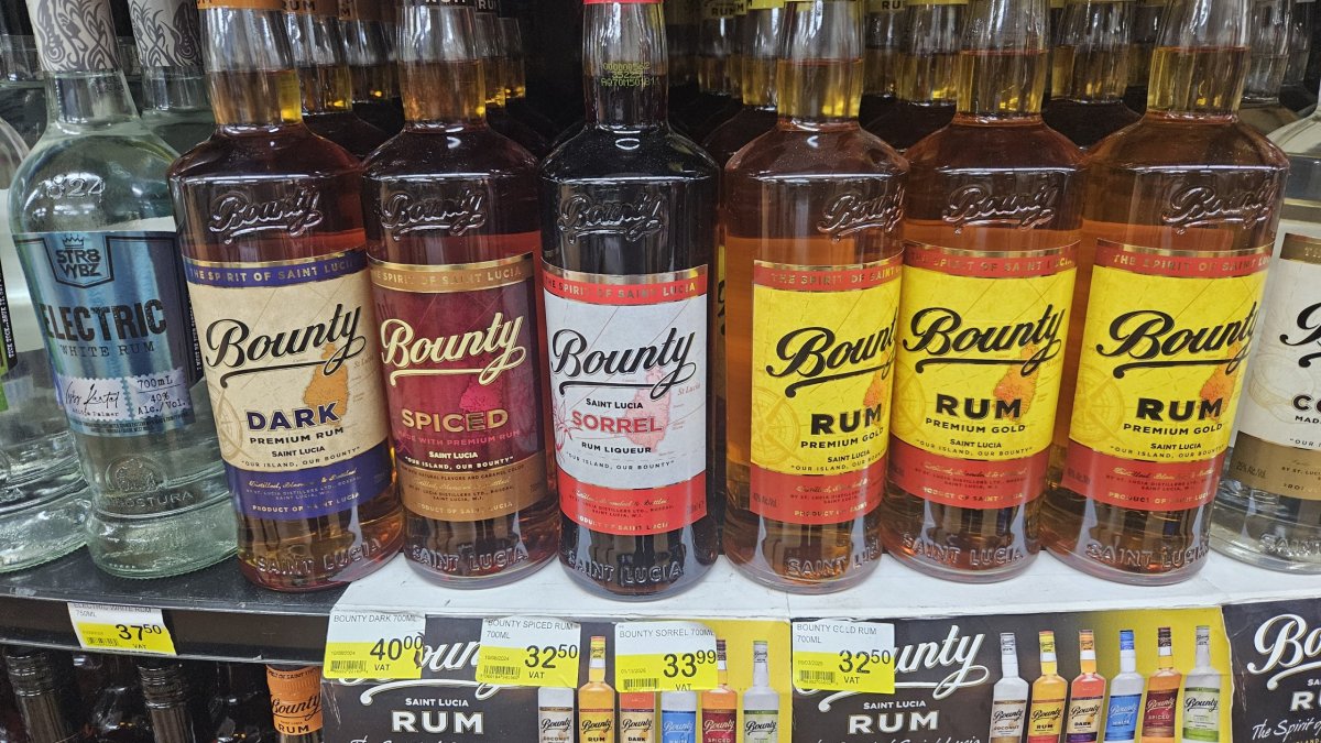 Na ostrově se vyrábí přes 20 druhů lokálního rumu několika značek, nám nejvíce chutnala značka Bounty, která je, jak jsme se opakovaně ptali různých místních, nejoblíbenější i u nich. Zajímavostí byl i zde extra silný bílý rum na do míchaných nápojů. Loni na Portoriku měl 75,5 %, tady dokonce rovných 80 %. Na výběr je zde spousta především lahvových piv, kdy nejoblíbenější značkou je zde místní pivo Piton pojmenované po přírodní dominantě ostrova. Běžné balení je zde 265 ml, což je pro nás sice nezvykle malé balení, ale zase má v těchto končinách tu výhodu, že vám v tom vedru nezteplá, než jej vypijete. A že se ho tady vypije, protože když se pohybujete po ostrově, tak má láhev v ruce skoro každý. Běžná cena za Piton v supermarketu (6 pack) je od 3,80 XCD (29 Kč), v barech a restauracích se běžně pohybuje mezi 5-7 XCD (38-53 Kč). Piva v plechu, navíc jen 250 ml, tu koupíte běžně pouze dvě – Heineken a Piton (což je ovšem místní značka Heinekenu). Co nás zaujalo, tak největší balení Coly zde mají pouhých 1,25 litru.