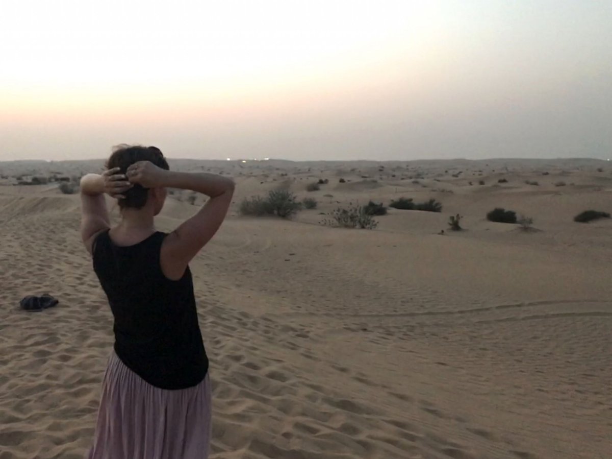 Začíná přerozdělování do terénních aut pro jízdu na písečných dunách a nakonec zůstáváme čtyři páry na místě s tím, že musíme počkat, až bude některé auto volné. Takhle čekáme dalších patnáct minut, nikdo se s námi nebaví a všichni začínají být docela naštvaní. Po chvilce se konečně dočkáváme vytoužené jízdy, nicméně slunce už je v podstatě zapadlé, takže je všechno ve spěchu a ke konci jízdy už jedeme normálně za tmy. Jízda samotná ale byla skvělý zážitek, hlavně v kombinaci s jekotem, který se každou chvíli ozýval od některé z holek v autě.