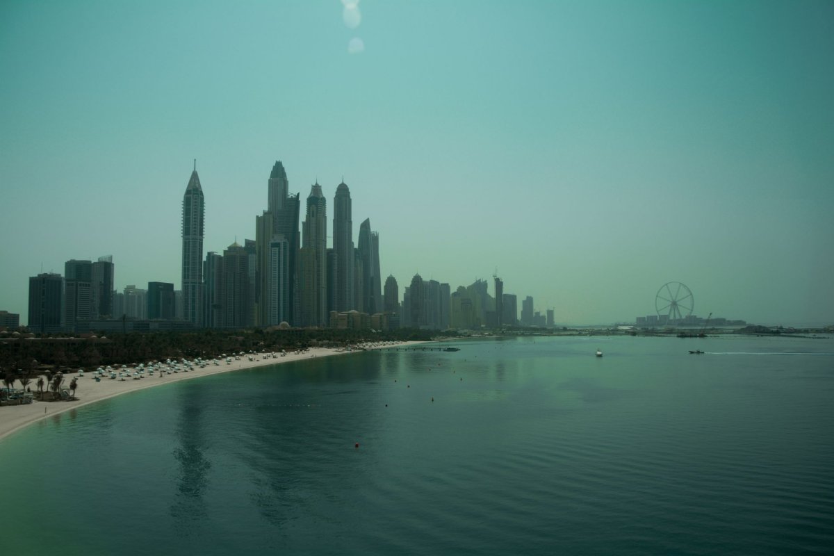 Po necelých deseti minutách nacházíme část pláže přímo naproti budoucího Dubai Eye - největšího vyhlídkové kola na světě. Prozatím je ale jen rozestavěno. U pláže jsou i obchůdky, restaurace, převlékárny, toalety, takže za nás spokojenost. Navíc je voda pořádně teplá (něco přes 30 stupňů) a to mé drahé polovičce vyhovuje.