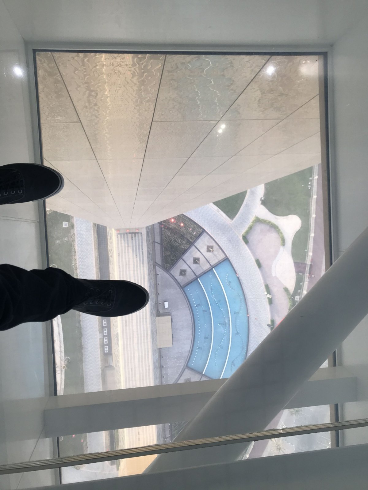 Překvapením je pro nás část podlahy, která se postupně při chůzi mění v okna, přes která je vidět až na zem, což velmi umocňuje pocit z výšky.