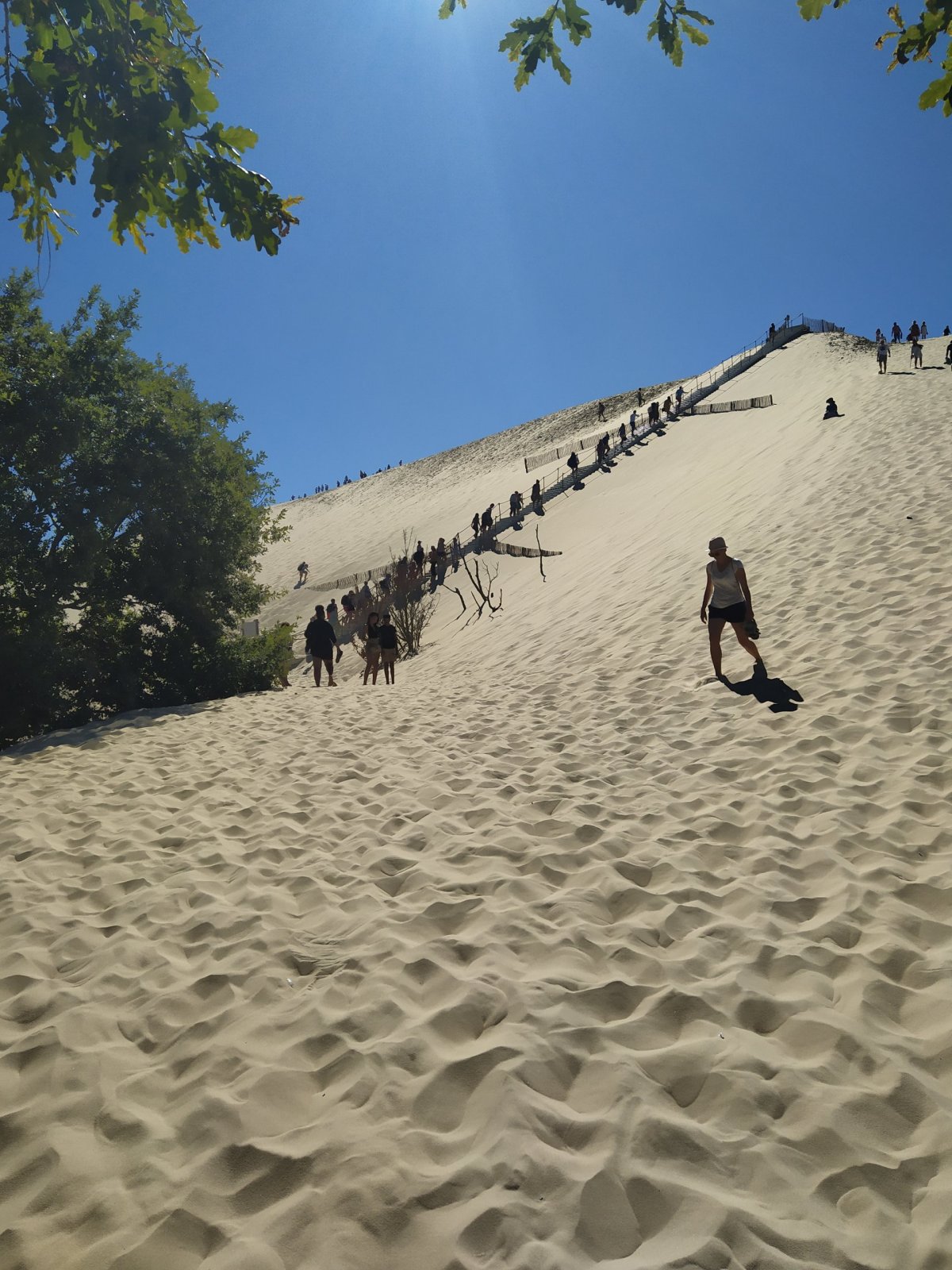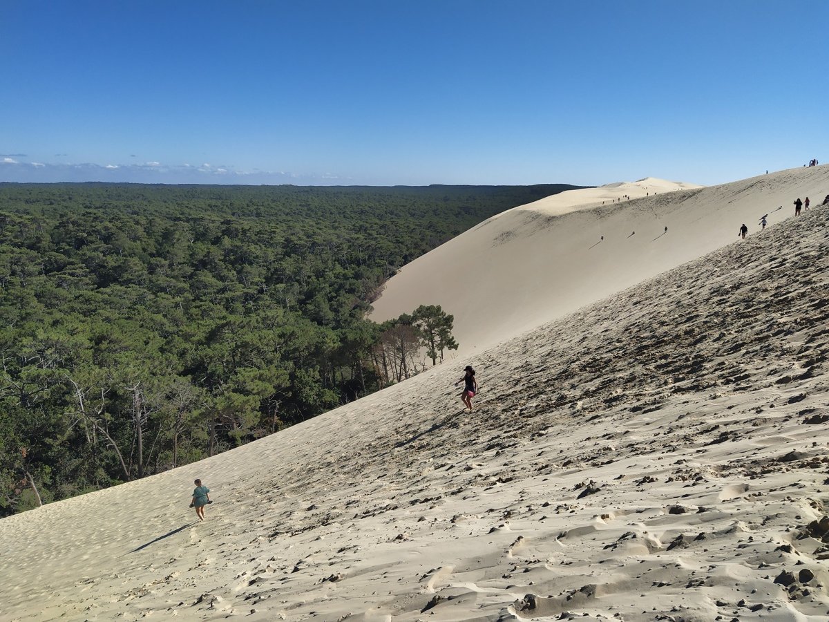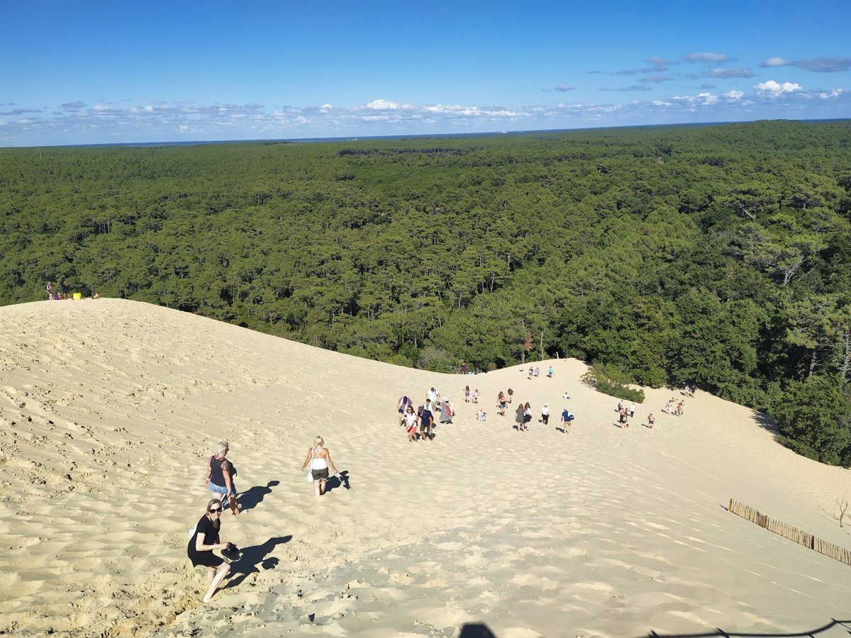 Co říct k duně samotné? Velkolepá. Kousek od vinařského regionu nečekaná. Z jedné strany se masa písku sváží do lesa a připomíná Afriku, z druhé písek padá do oceánu. Na první pohled vypadá děsivě, ale cestou nahoru lze využít schůdky. Odvážlivci si tu házejí míčkem (který se jim samozřejmě brzy skutálí z duny dolů), někdo zase cvičí jógu.