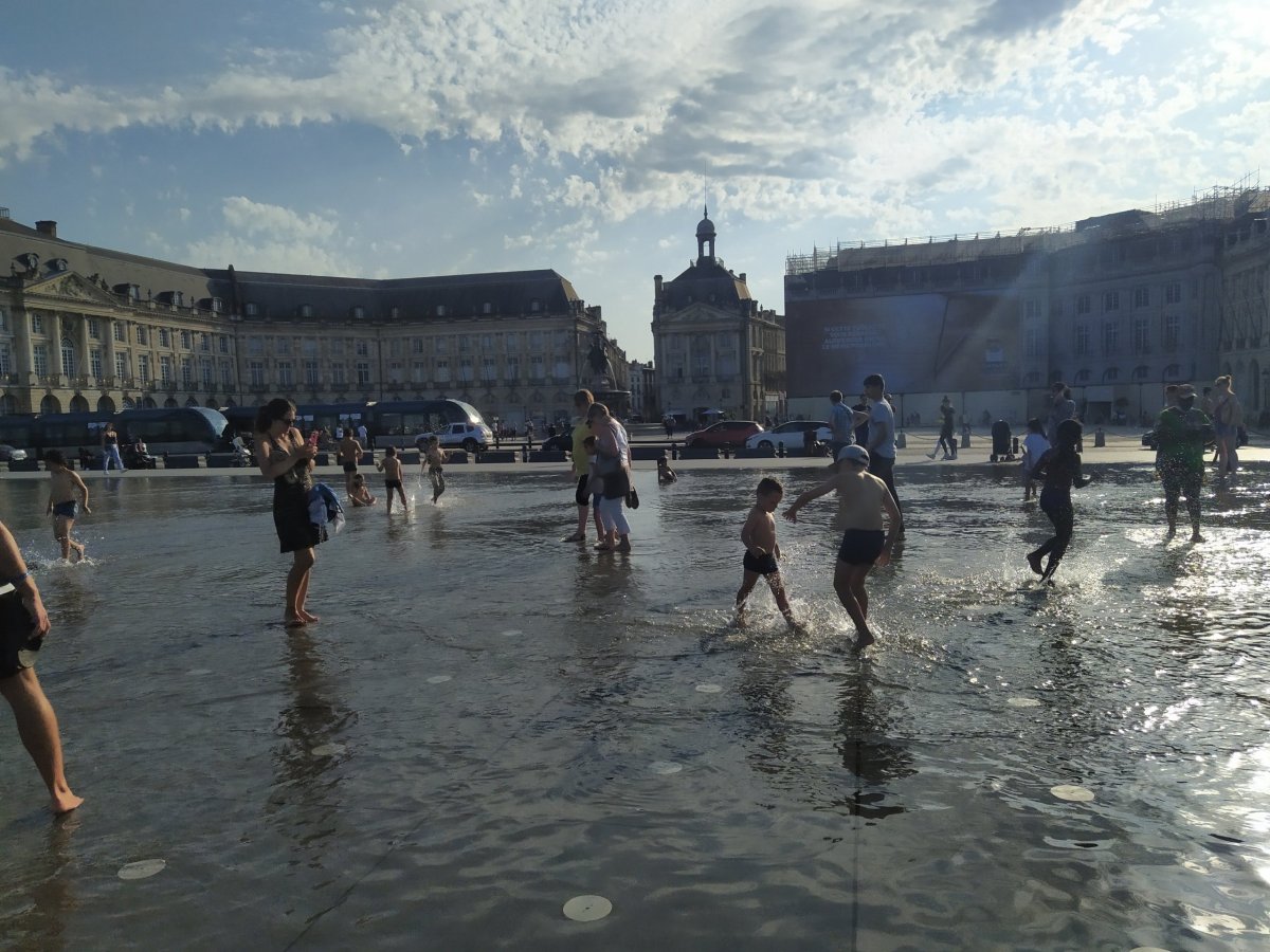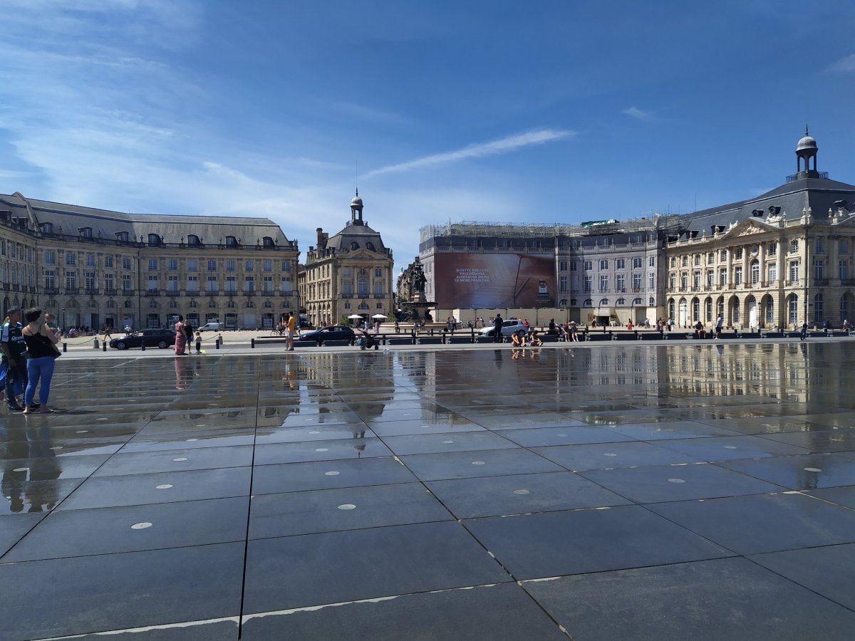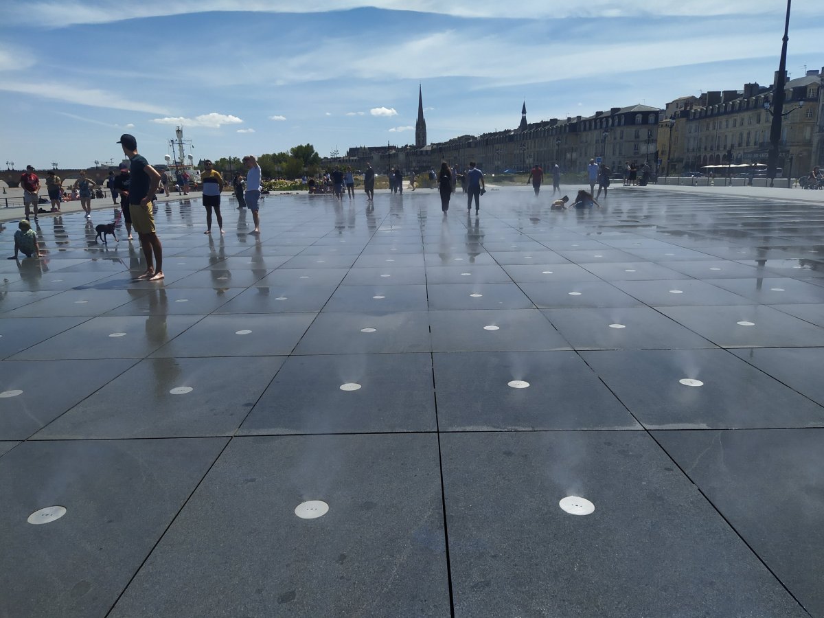 Kousek od Pont de Pierre se nachází hlavní místní atrakce Le miroir d'eau neboli vodní zrcadlo – prostor hned vedle řeky, který se v pravidelných časech zalije několika centimetry vody tak, že se v ní zrcadlí protější palác. Po asi deseti minutách se voda vypustí a nahradí ji vodní pára, která je v horkých letních dnech krásně osvěžující. Vodní zrcadlo je relativně novým přírůstkem mezi zajímavosti Bordeaux a svým způsobem i symbolem rostoucího turismu. Vedle okouzlených turistů tu ale uvidíte i místní děti, které se tu cachtají jak v bahňáku.
