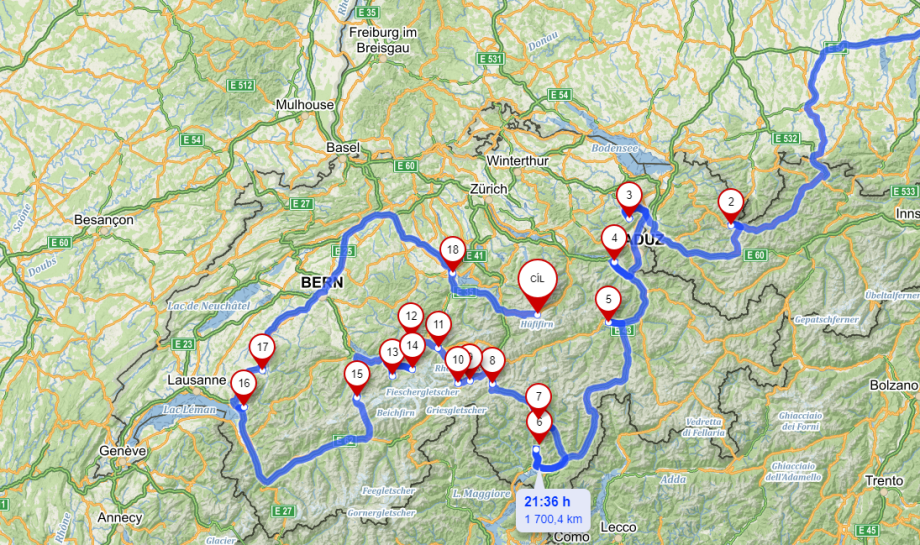 Celkem 12 dní, 2550 najetých km a stejně to bylo málo. Přijde mi, že ve Švýcarsku je tolik nádherných míst, že bychom tam mohli strávit další měsíc. Nakonec nás trochu mrzelo, že jsme na některých místech jako Furka pass, Klausen pass atd. nemohli strávit více dní, proto bych příště neplánovala cestu předem tolik do detailu a rozhodovala se až na místě. Švýcarsko není určitě levnou zemí, ale když se přizpůsobíte, spíte ve stanu a vezmete s sebou vařič, není to nic hrozného. Také se dost vyplatí nebýt líný a místo lanovky víc chodit po svých, když to dává smysl. Stanovat na divoko se ve Švýcarsku určitě dá, je to super, ale chovejte se prosím při tom zodpovědně :).