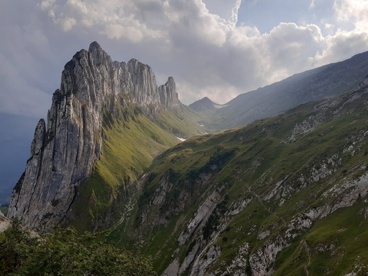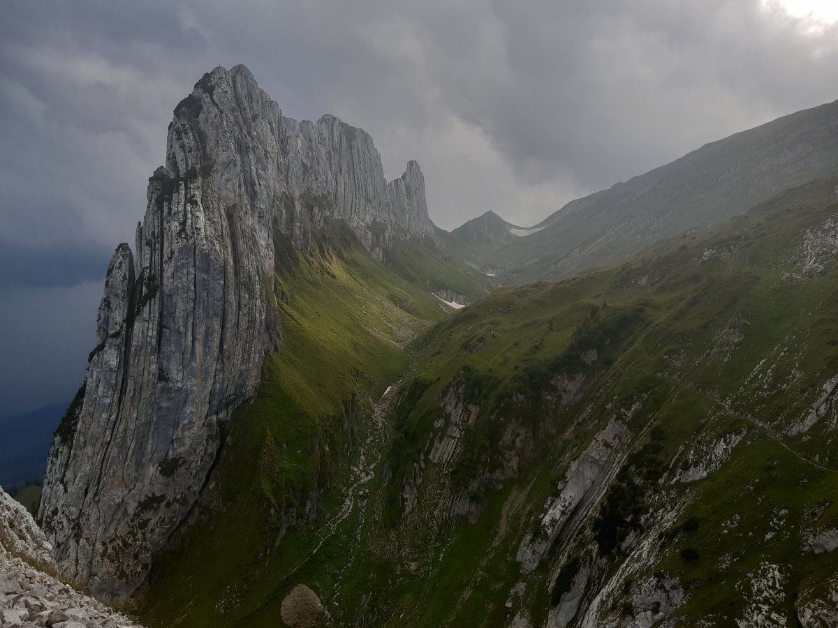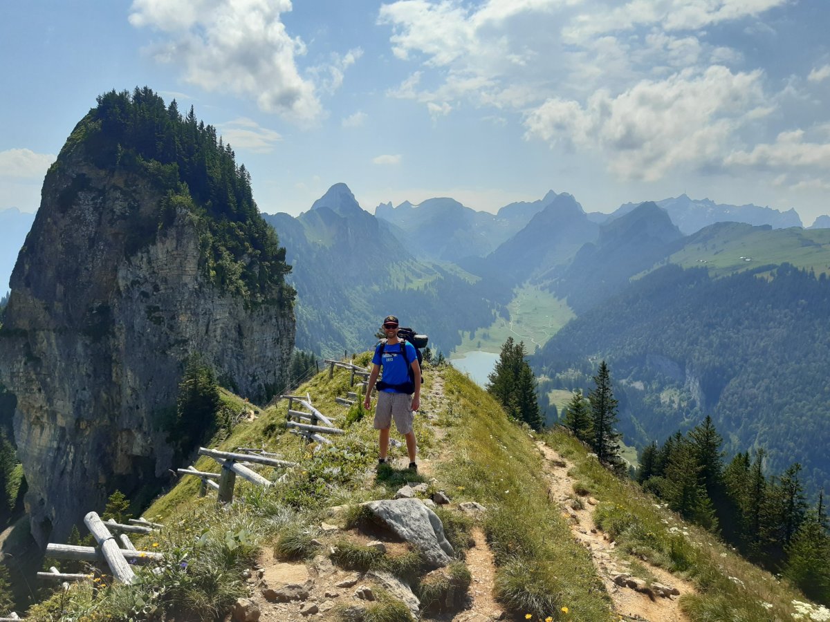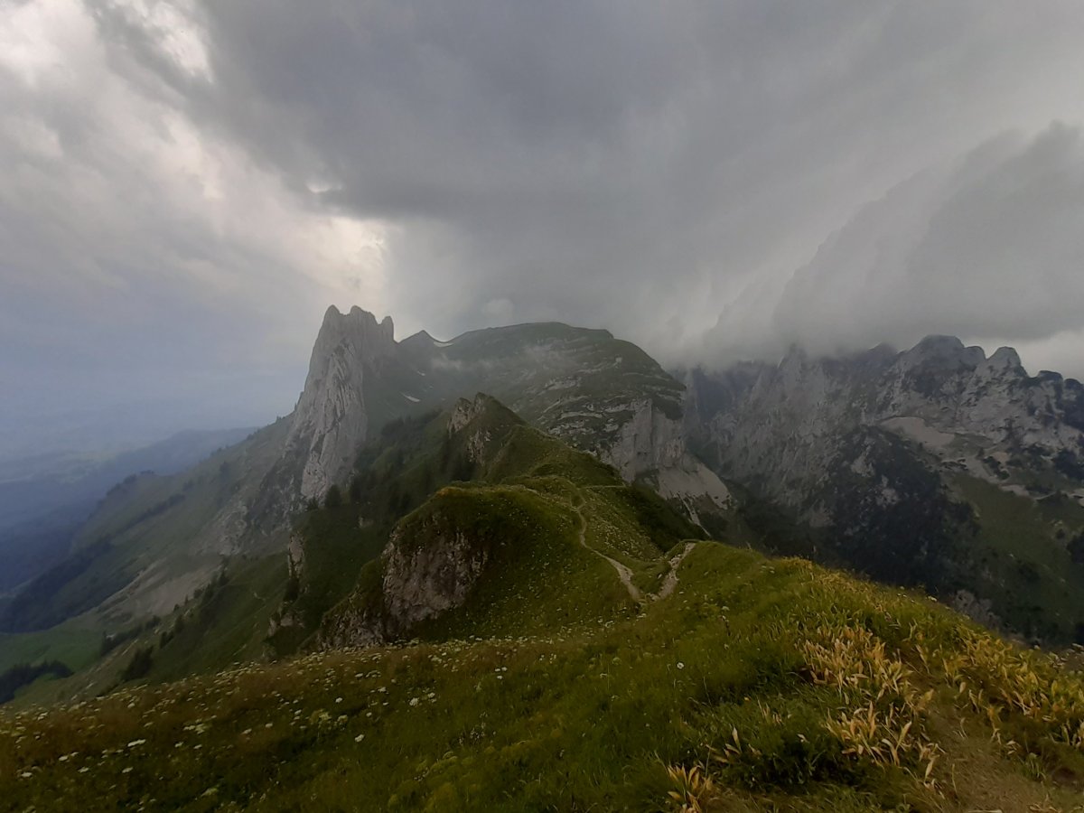 Druhý den jsme už vyrazili do Švýcarska. První zastávkou byla vesnička Brulisau, výchozí bod treku na Saxer Lücke. Auto jsme nechali na parkovišti u lanovky (zdarma) a lanovkou jsme vyjeli na Höher Kasten ( 27 CHF/os.). Z Höher Kasten vedou dvě cesty na Saxer Lücke. Buď můžete jít širší kamennou cestou pod vrcholky, která vede kolem jezera Sämtisersee, nebo se dá jít po hřebeni. Navigace vás bude hnát tou dolní cestou, která je asi pohodlnější a má menší převýšení, ale doporučuji tu po hřebeni, výhledy za to stojí :). K večeru jsme akorát stihli sejít od Saxer Lücke k jezeru Fällensee, a pak nás dostihla bouřka. Rychle jsme se teda vykoupali v ledové vodě a postavili stan na břehu jezera.