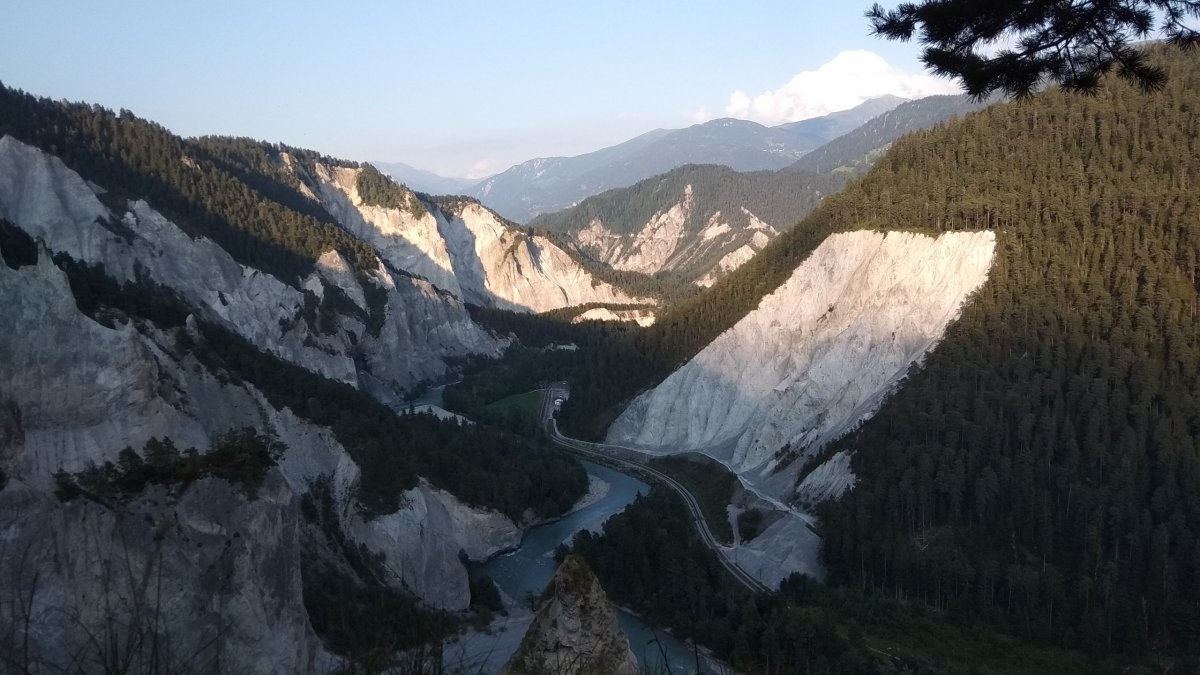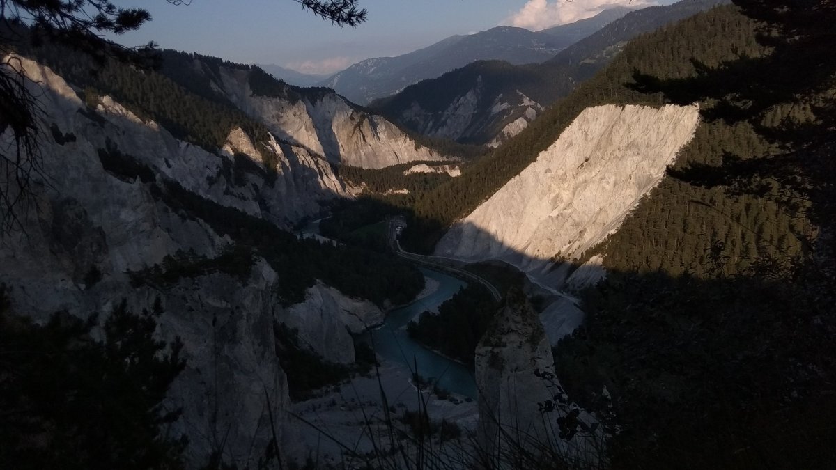 Ráno jsme sešli zpět dolů do Brulisau (cca 1,5 hodiny) a vyrazili dál. Další zastávkou byl vodopád Berschnerfall. Od auta se k němu jde asi 10 minut a zřejmě není moc profláknutý, protože jsme tam byli úplně sami. Poté jsme přejeli k jezeru Crestasee. Zde můžete nechat přes noc auto za nějakých 5 CHF tuším. Chvíli jsme se váleli u jezera, a pak jsme zase zabalili krosny a vydali se nocovat na vyhlídku na Rýn - Rheinschlucht. Jsou zde dvě oficiální vyhlídky (Spur I a II), těm jsme se ale vyhnuli, protože jsme měli předem tip na jednou louku, ze které je ještě hezčí výhled, jste tam sami a dá se tam postavit stan. Cesta trvala od Crestasee necelé 2h a je celou dobu mírně do kopce. Na konci louky jsme se setměním postavili stan a při vaření večeře koukali na srnky kousek o nás.