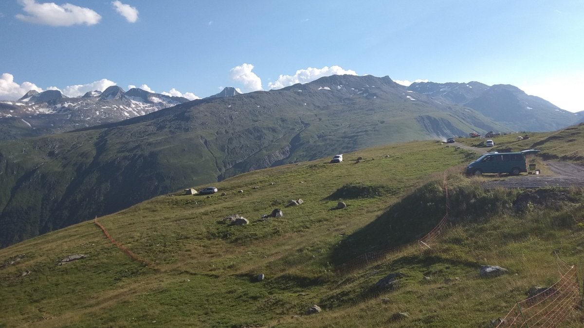 Předem jsme měli tip na skvělé místo na spaní těsně pod nejvyšším bodem průsmyku. Stačilo ze silnice odbočit na kamennou cestu směřující doprava do kopce. Po chvíli se cesta jeví pouze jako odbočka k malému parkovišti, ale když projedete parkovištěm dál nahoru, tak se asi po kilometru jízdy do kopce začnou objevovat malé slepé odbočky, kde můžete nechat auto a postavit stan s výhledem na celý průsmyk. Takových míst je tam cca 10. Jsou od sebe dost daleko (cca 50-100m), takže máte spoustu místa sami pro sebe a nikdo vás neruší. Řekla bych, že o nich vědí hlavně místní, s námi tam byli myslím samí Švýcaři. S takovým výhledem jsem ještě neusínala.. Furka pass mě úplně dostal :).
