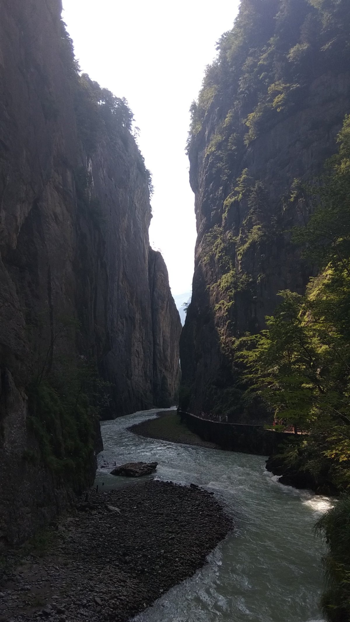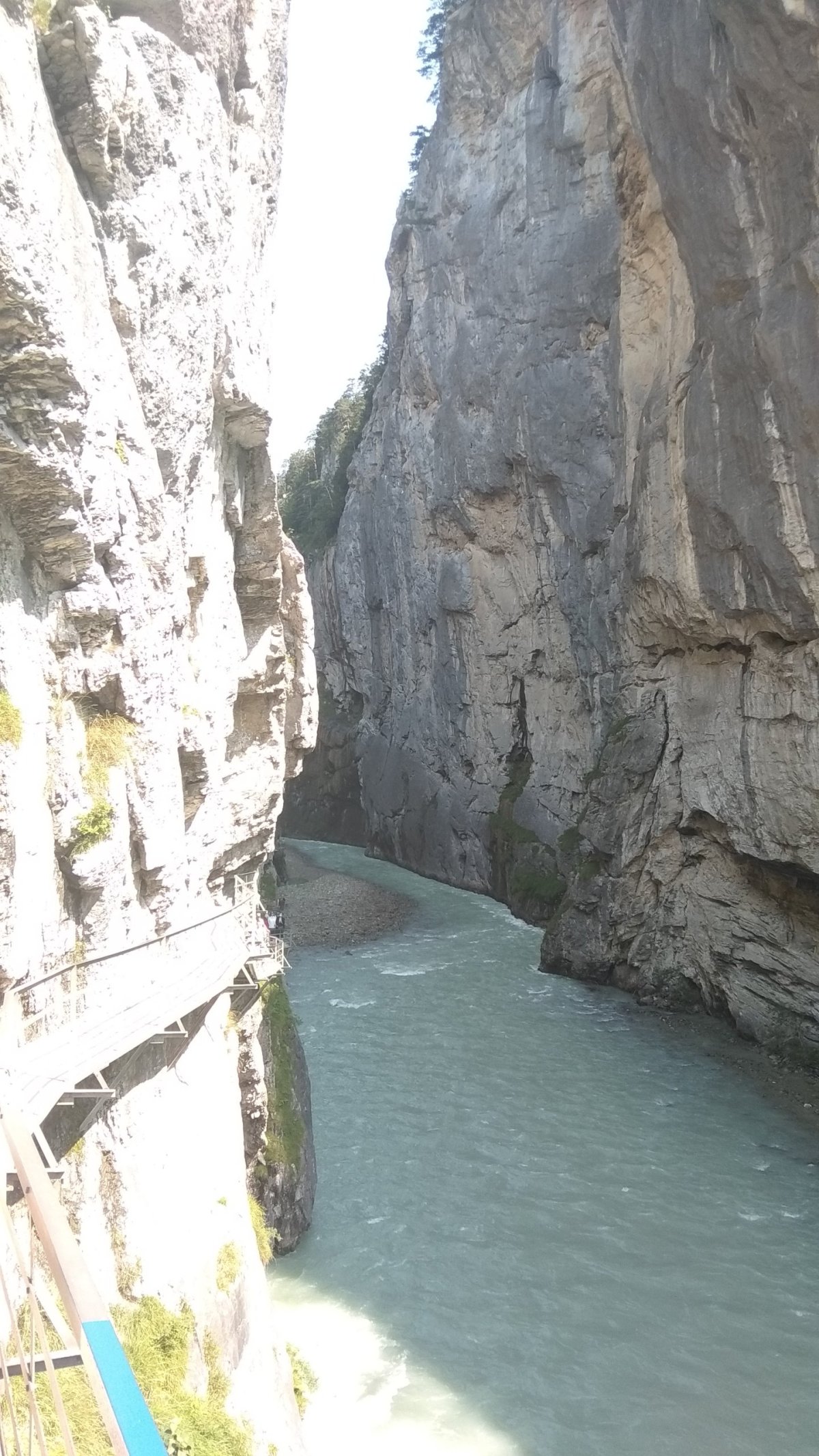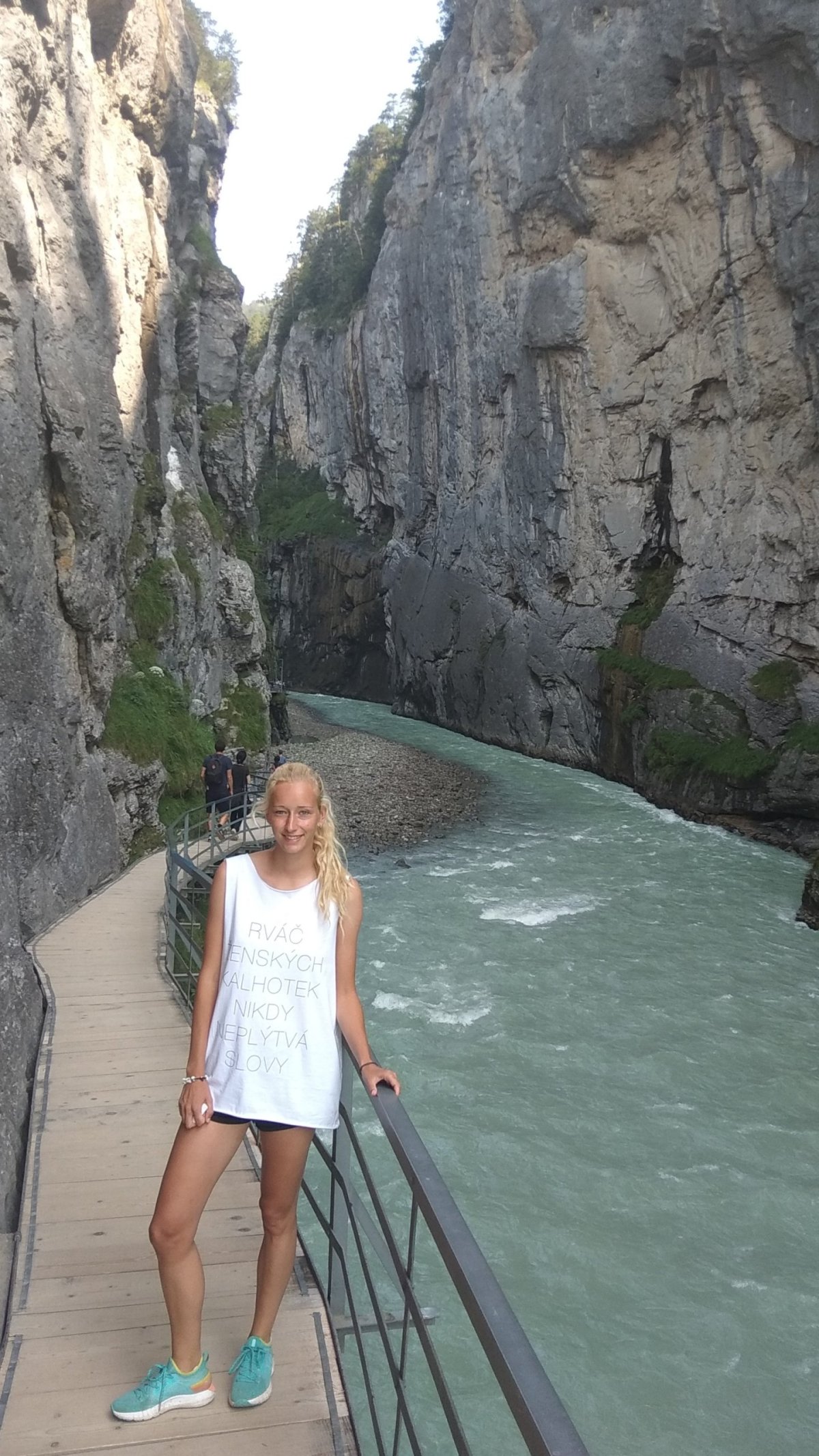 Z Furka passu se nám hrozně nechtělo pryč a trochu jsme litovali, že nemůžeme zůstat víc nocí. Tak příště :). Ráno jsme zase sbalili stan a vydali se na prohlídku soutěsky Aareschlucht. Vstup stál 9 CHF na osobu, za mě soutěska za návštěvu určitě stojí. Na délku má asi 1,5 km, takže je to, i s cestou zpět, pohodová procházka na hodinu.