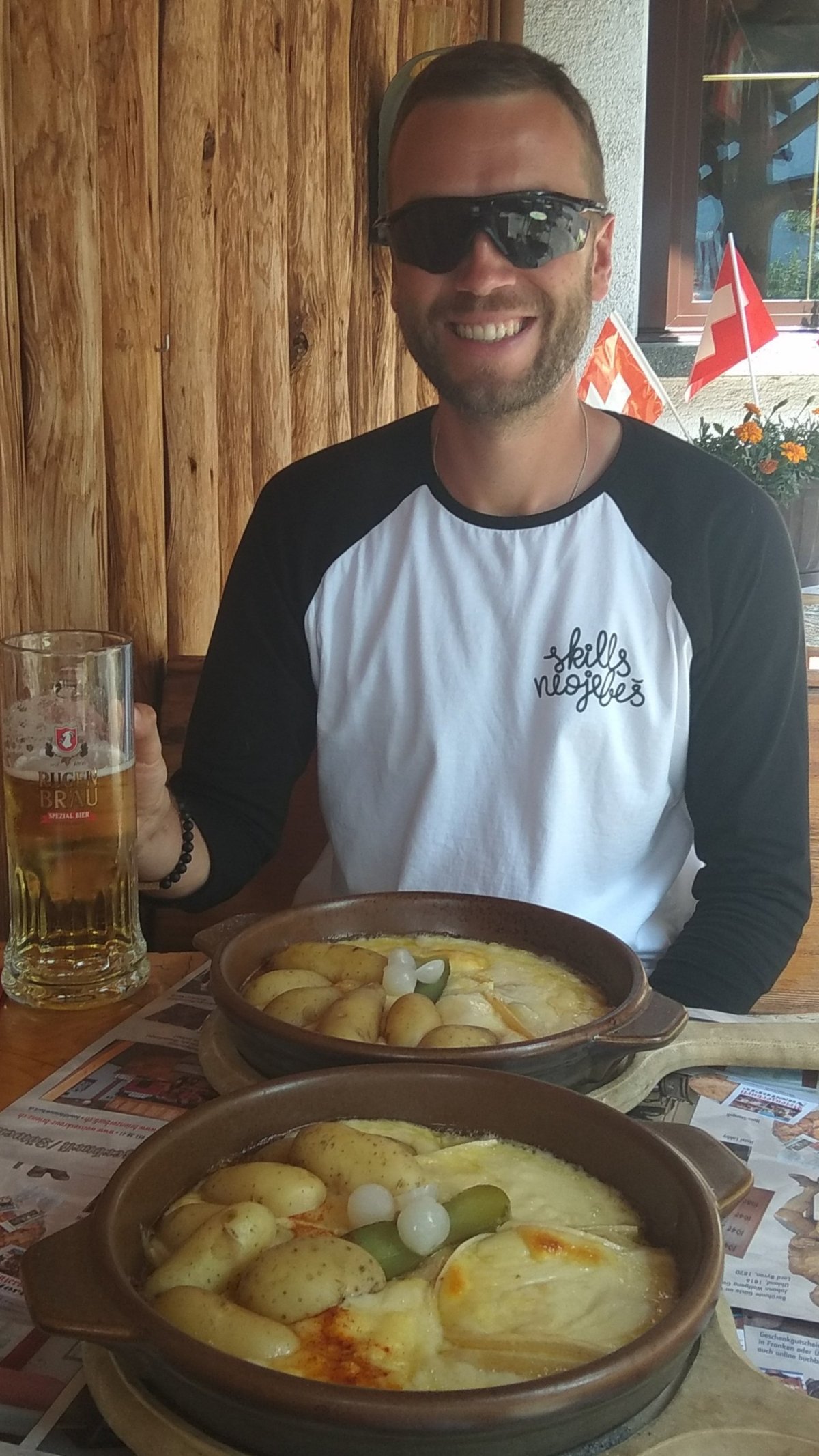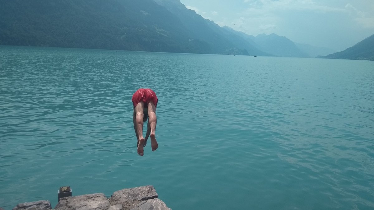 Po soutěsce jsme měli stále fůru času, tak jsme se rozhodli jet se vykoupat k nedalekému Brienzersee. Auto jsme nechali na parkovišti v Brienzu, kousek od jezera vyzkoušeli naše místní raclette, a poté jsme strávili asi dvě hoďky na mole u jezera.