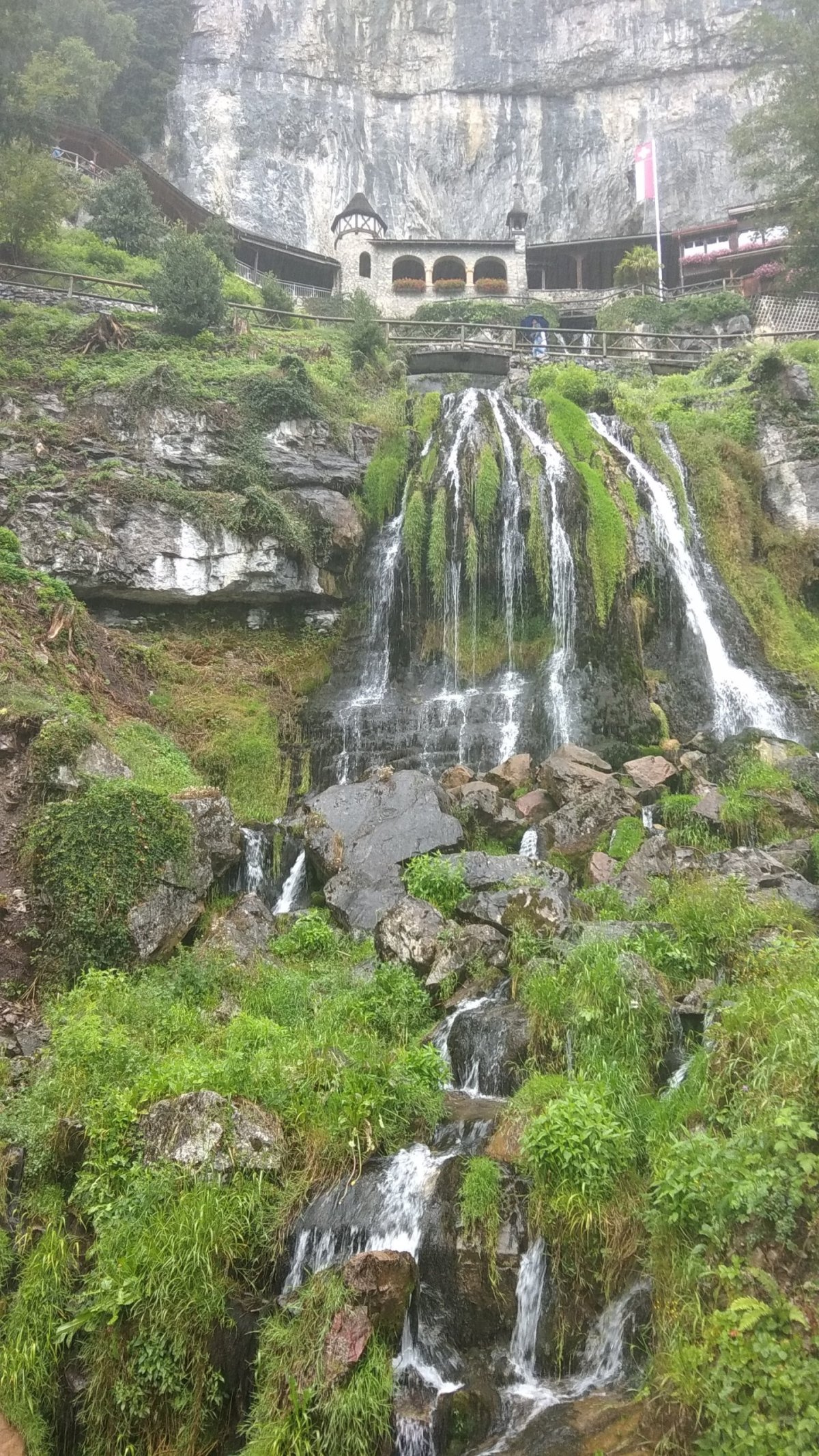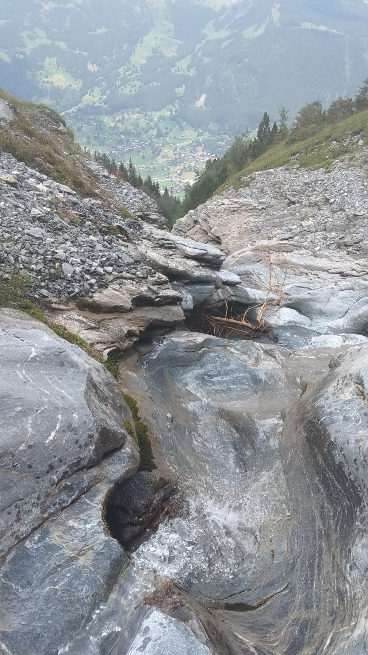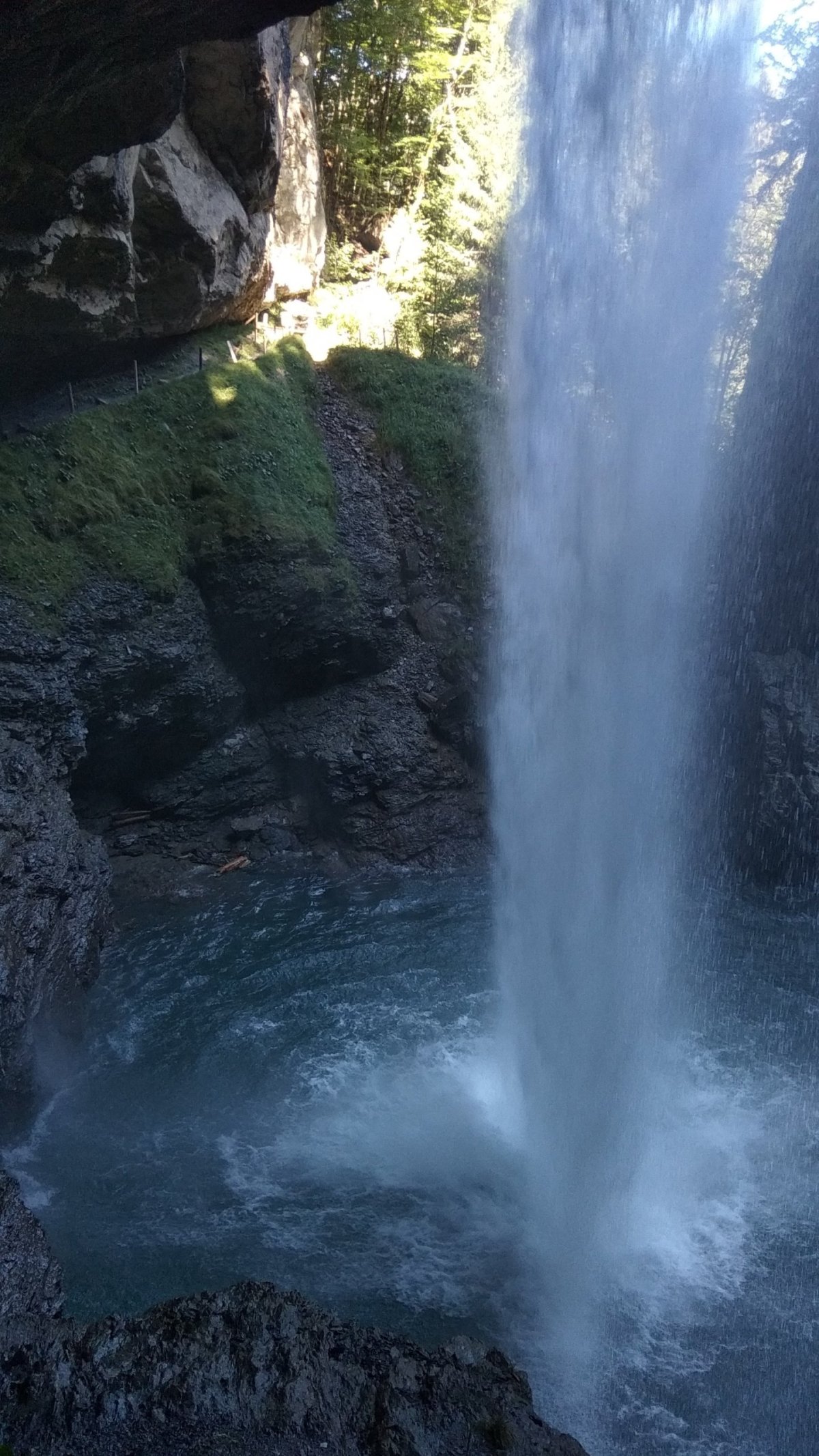 Původně jsme měli v plánu dát si z Grindelwaldu trek na Bachalpsee a tam si někde najít místo na stan, ale počasí mělo trochu jiné plány. Od rána intenzivně pršelo, na noc byly vyhlášeny výstrahy z důvodu bouřek, a tak jsme se ráno rozhodli booknout si na následující noc ubytování pod střechou. Celé dopoledne jsme strávili v sauně s výhledem na hory v Grindelwaldu, pak jsme si udělali krátký výlet na St. Beatus Caves a asi ve 4 jsme dorazili do homestaye ve Zweisimmenu.