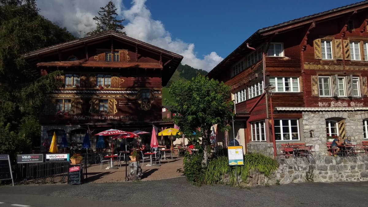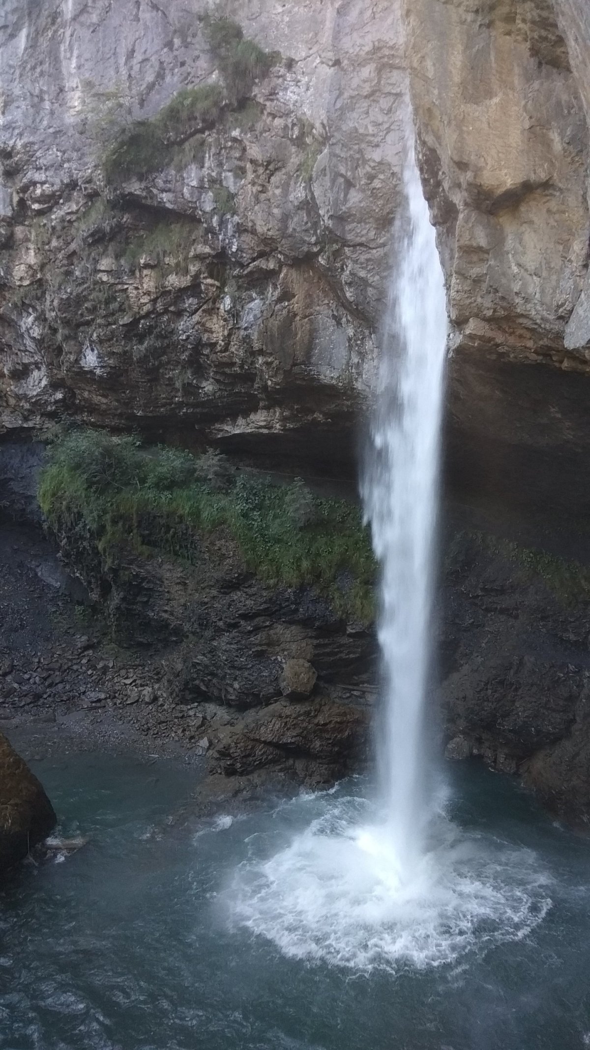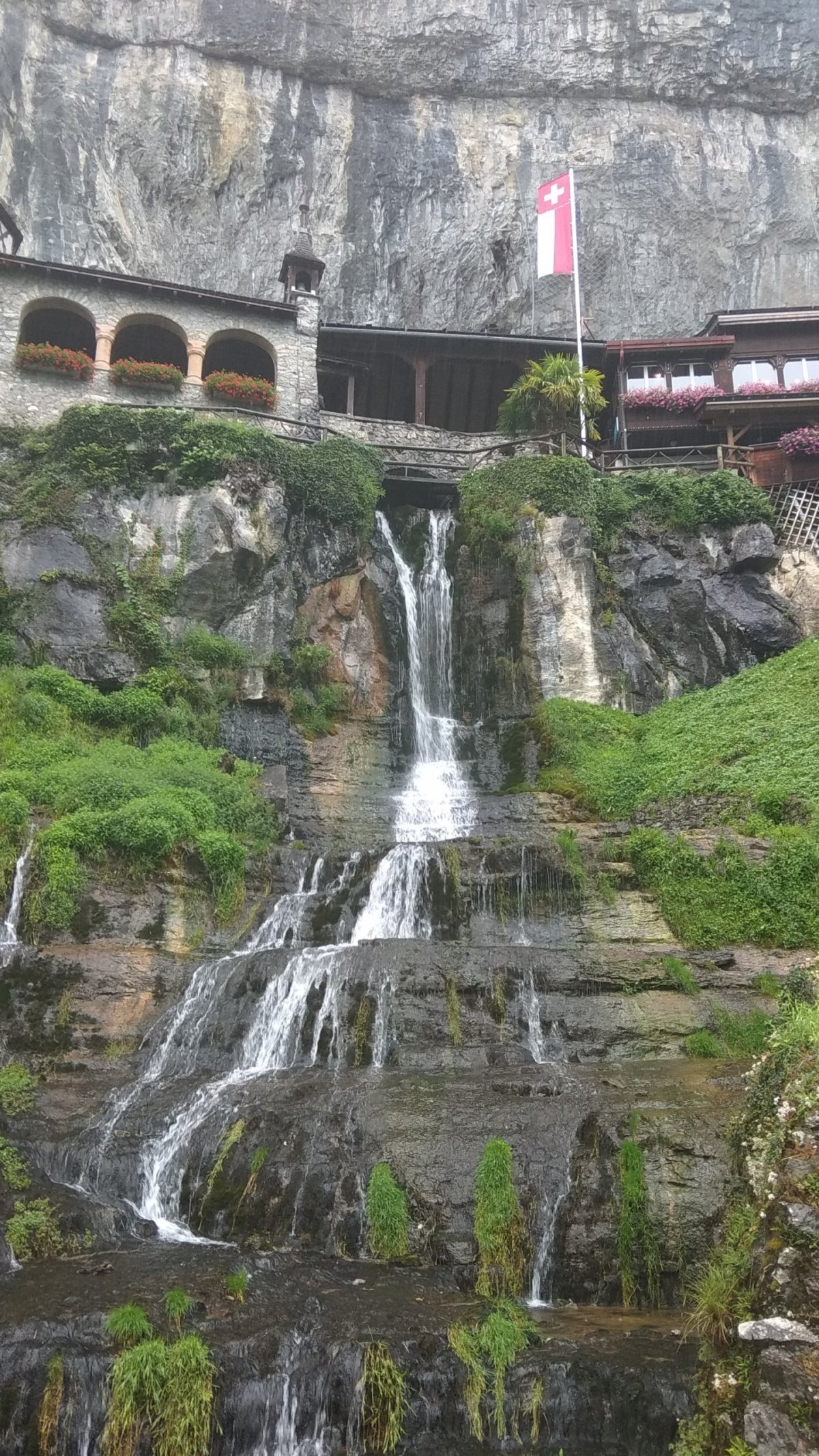 Původně jsme měli v plánu dát si z Grindelwaldu trek na Bachalpsee a tam si někde najít místo na stan, ale počasí mělo trochu jiné plány. Od rána intenzivně pršelo, na noc byly vyhlášeny výstrahy z důvodu bouřek, a tak jsme se ráno rozhodli booknout si na následující noc ubytování pod střechou. Celé dopoledne jsme strávili v sauně s výhledem na hory v Grindelwaldu, pak jsme si udělali krátký výlet na St. Beatus Caves a asi ve 4 jsme dorazili do homestaye ve Zweisimmenu.