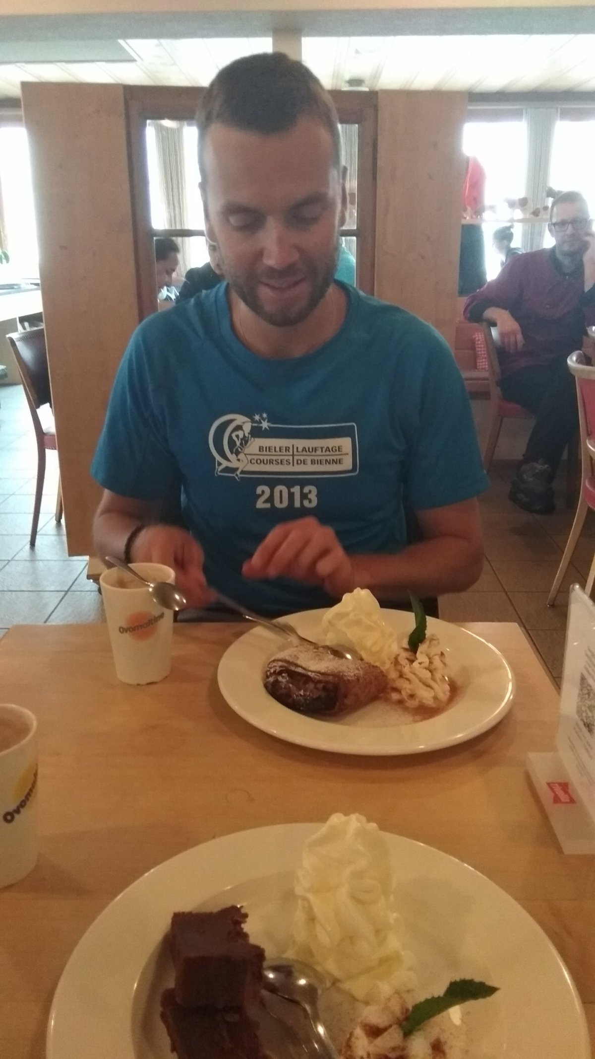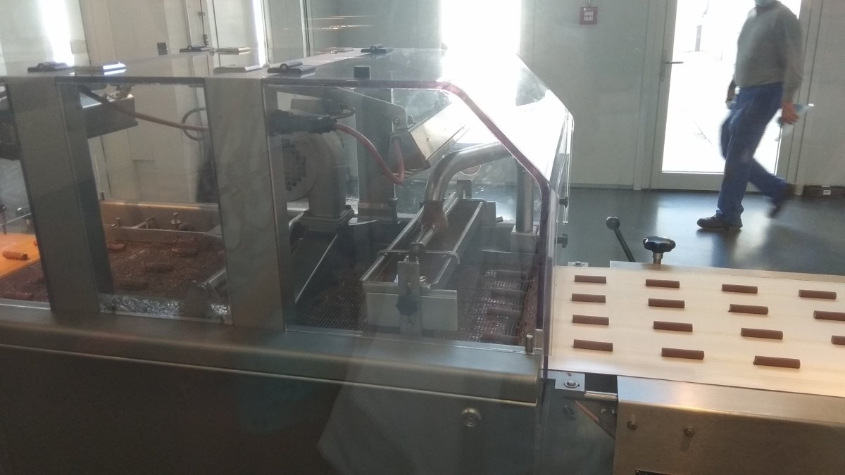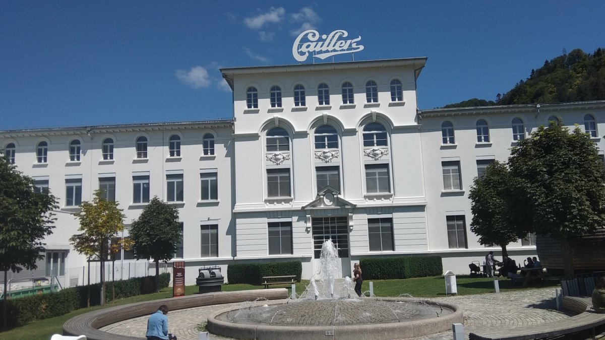 Desátý den byl jednoznačně ve znamení jídla. První zastávkou byla čokoládovna Maison Cailer, kde jsme si za 15 CHF koupili tour továrnou. Bylo to moc fajn a na konci vás zavřou do místnosti, kde můžete sníst tolik čokolády, co hrdlo ráčí. Myslím si, že v pojídání sladkého jsme dost zkušená dvojka, ale po 5 minutách a s cukrovkou na krku jsme to vzdali :).