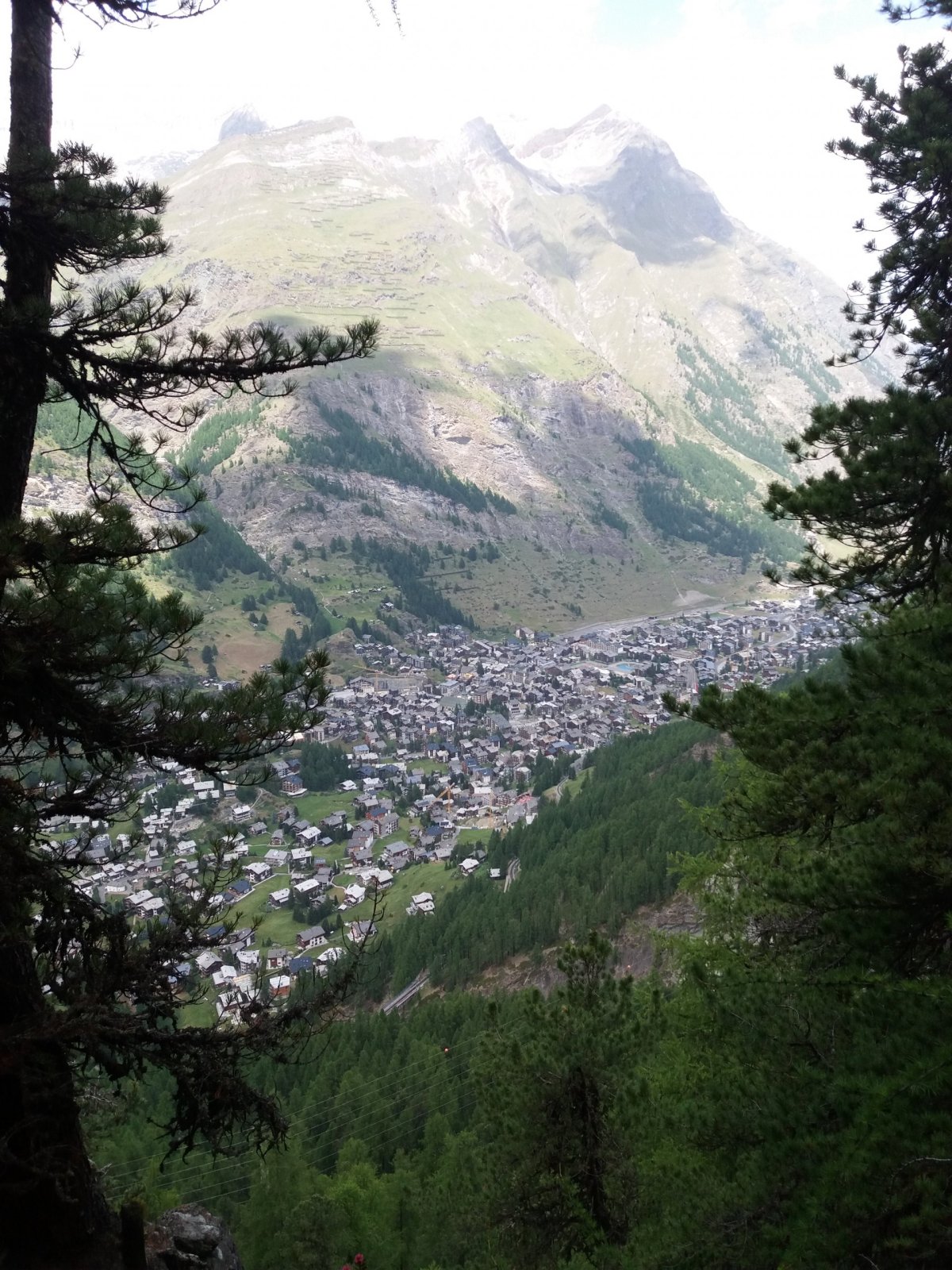 I přes pokročilou hodinu (konkrétně 11:45) je plán cesty jasný. Míříme pěšky z Zermattu na Gornergrat (3130 m.n.m.). Turistický rozcestník ukazuje čas cesty 4h50min (nutno podotknout, že pauza na odpočinek nebo focení není nikdy zahrnuta). Na druhou stranu má člověk zjištěno, co přesně ho na cestě čeká. Velkou výhodou cesty na Gornergrat je, že vede přes jednotlivé zastávky ozubnicové železnice z Zermattu na Gornergrat, takže turista může zvolit vlak pro cestu na vrchol nebo dolů do údolí například při nepřízni počasí. Už za centrem města začíná krátké prudší stoupání, naštěstí pohled na Matterhorn (bohužel špička vrcholu se stále noří v mracích) námahu stoupání zmírňuje. Teplota na slunci přesahuje 30 °C, ale za chvíli cesta v mizí do lesa, kde se člověk schová ve stínu nicméně prudce stoupá do svahu.