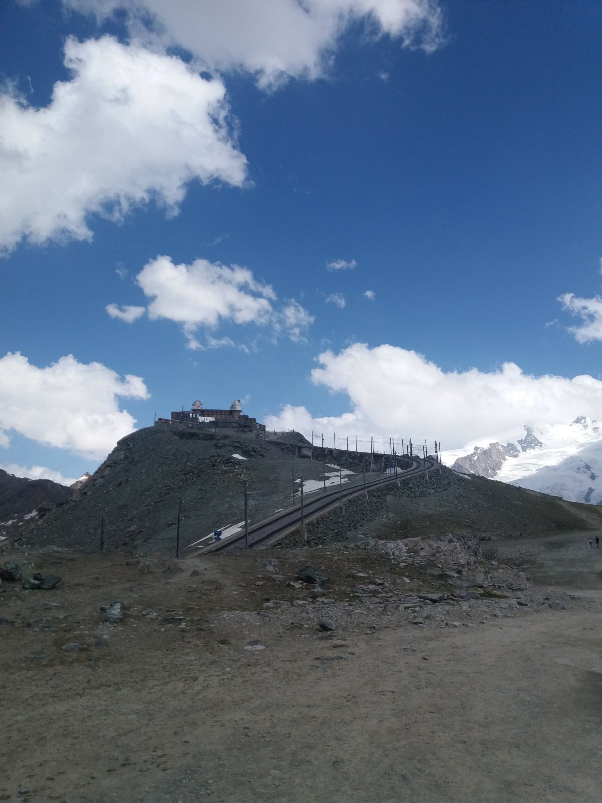 Po příchodu na Riffelberg ve 14:30 se cesta konečně opět narovnává a rýsuje se konečně špička Breithornu a Malého Matterhornu. Nicméně dle ukazatelů je to na vrchol Gornergrat minimálně dalších 90 minut, (záleží jakou cestu člověk zvolí) nicméně je jasné, že nejhorší stoupání máme za sebou. Po 45 minutách chůze z Riffelbergu se dostaneme na zastávku Rotenboden, které se nachází u jezera Riffelsee (navštívíme ho po cestě dolů) a pokračujeme na vrchol Gornergratu. Výhodou je, že od Rotenbodenu již vidíme na protější straně hradbu hor přesahujících 4000 m.n.m. (Breithorn, Castor, Pollux, Lyskamm a masiv Monte Rosy), které tvoří hranici mezi Švýcarskem a Itálií. Zároveň poprvé potkáváme větší počet turistů, kteří se nechali vyvést vlakem do stanice Rotenboden a posledních 300 výškových metrů zdolávají pěšky, nicméně převažuje počet lidí, kteří sestupují z Gornergratu na Rotenboden a zbytek cesty se svezli vlakem dolů do Zermattu. Bohužel rychlé tempo z údolí na vrchol si vybírá svoji daň a na posledním úseku začíná na člověka doléhat krize, přesto přes protrápený závěr se v 16:00 dostáváme na vrchol, na kterém se kromě cílové stanice ozubnicové dráhy nachází observatoř a hotel. Odměnou za výstup je konečně pohled na celý Matterhorn bez mraků. Z vyhlídkové plošiny Belveder nad budovou hotelu je fantastický pohled všemi směry.