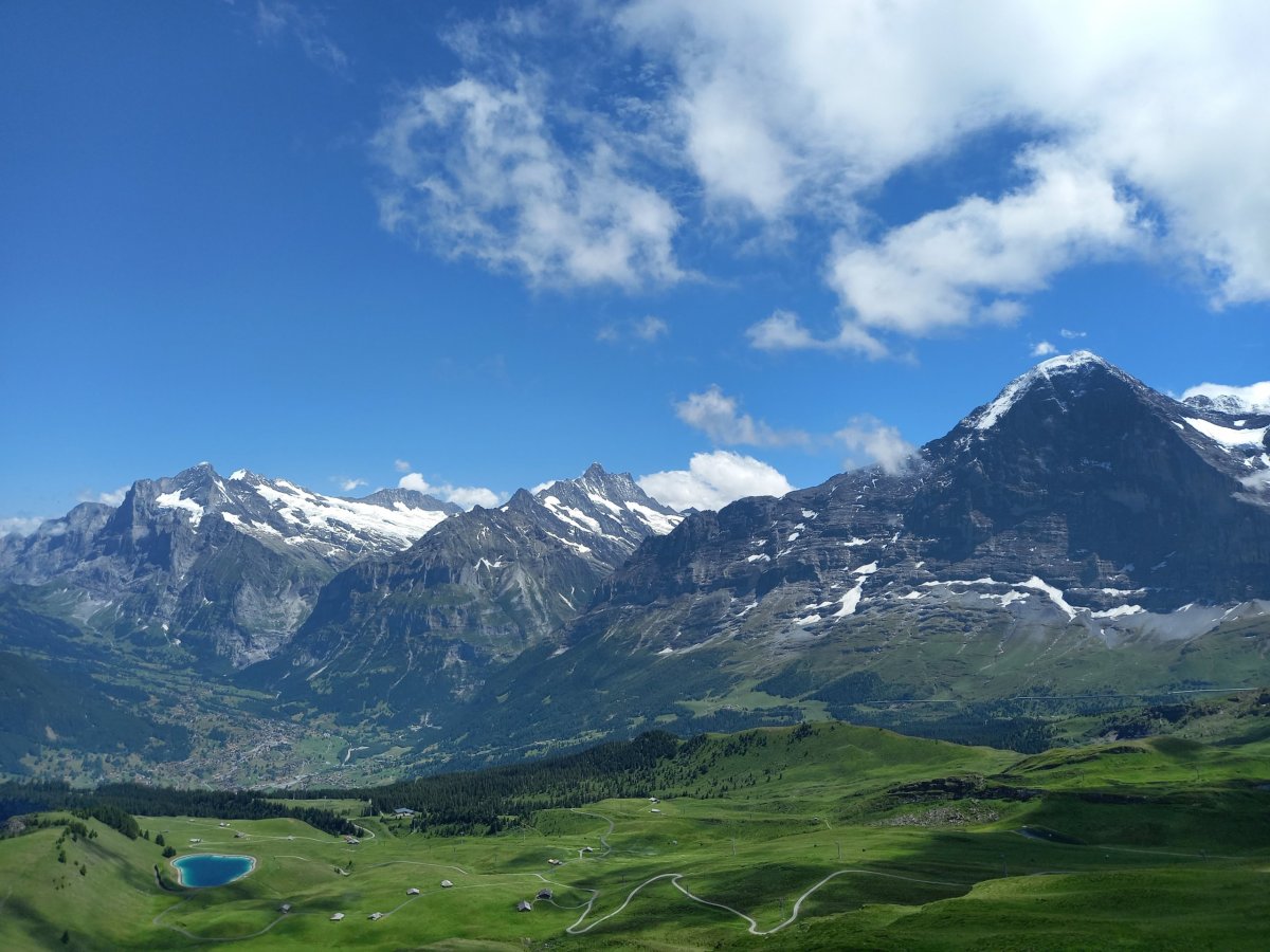 Po 20 minutách jízdy z Interlakenu nejprve prozkoumáme obec Lauterbrunnen, která se nachází ve stejnojmenném údolí pod horou Jungfrau (4158 m.n.m.). Symbolem obce je 297m vysoký vodopád Staubbach. Následně pokračujeme vlakem (Lauterbrunnen - Kleine Scheidegg) do oblíbeného horského střediska Wengen, ve kterém se konají každoročně závody světového poháru mužů v alpském lyžování. Z Wengenu míříme na Mannlinchen (2345 m.n.m.), který se tyčí nad střediskem. Výšlap přes Ussi Allmi zabere cca 2-3 hodiny a je nutné vystoupat přes 1100 výškových metrů. Utrpení do kopce je možné vynechat použitím lanovky z Wengenu, která vede na vrchol. Přesto nádherný výšlap rádi podstoupíme. Po celou dobu výstupu jsou naprosto fantastické výhledy. Na vrcholu Mannlinchenu dominuje pohled na ikonickou trojici Eiger (3970 m.n.m.) - Mönch (4107 m.n.m.) - Jungfrau (4158 m.n.m.), které jsou symbolem nejenom Bernských Alp.