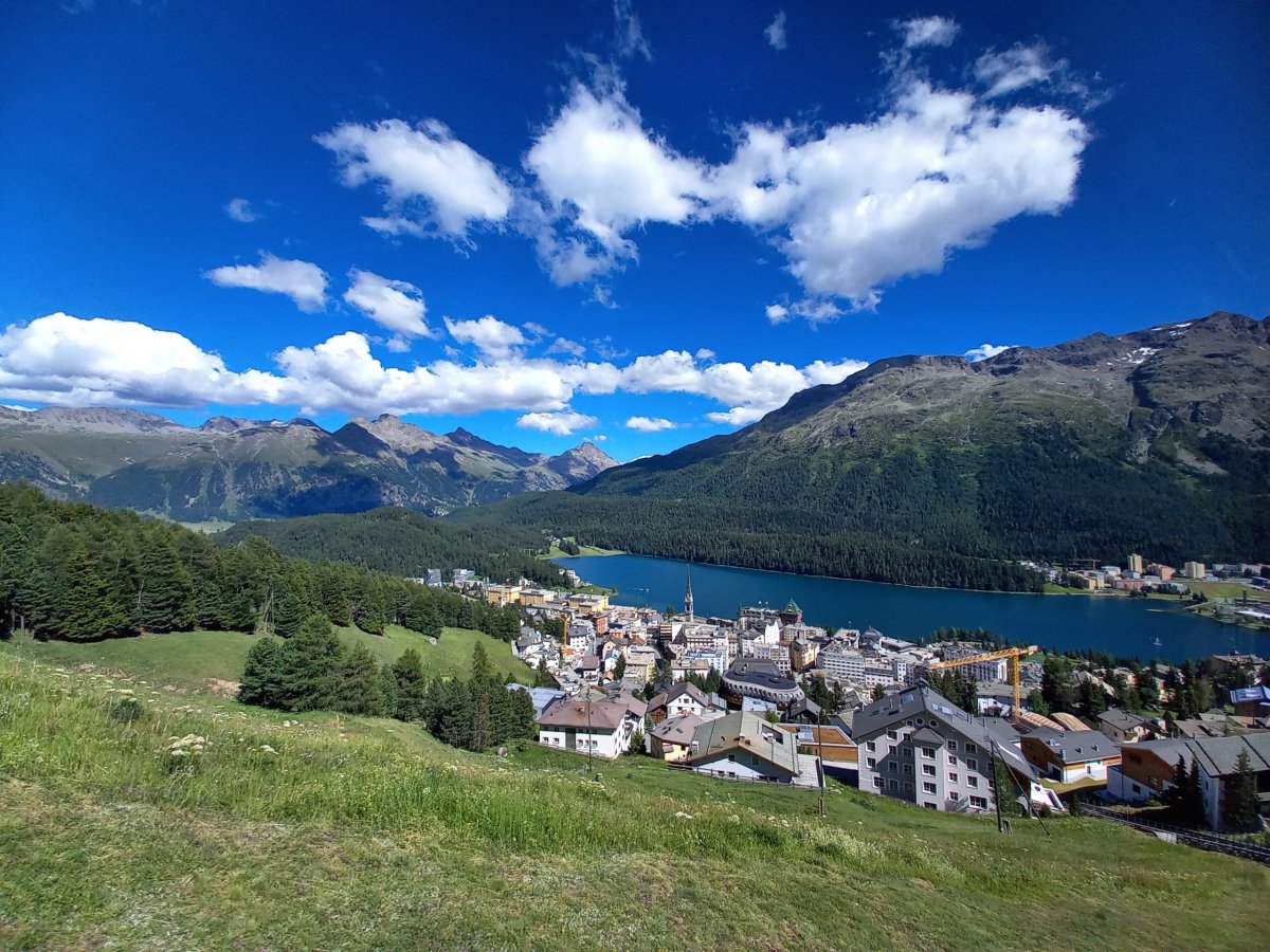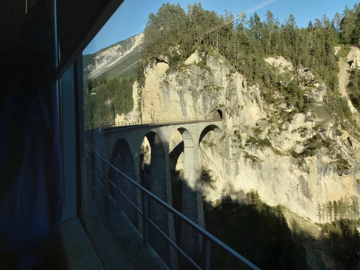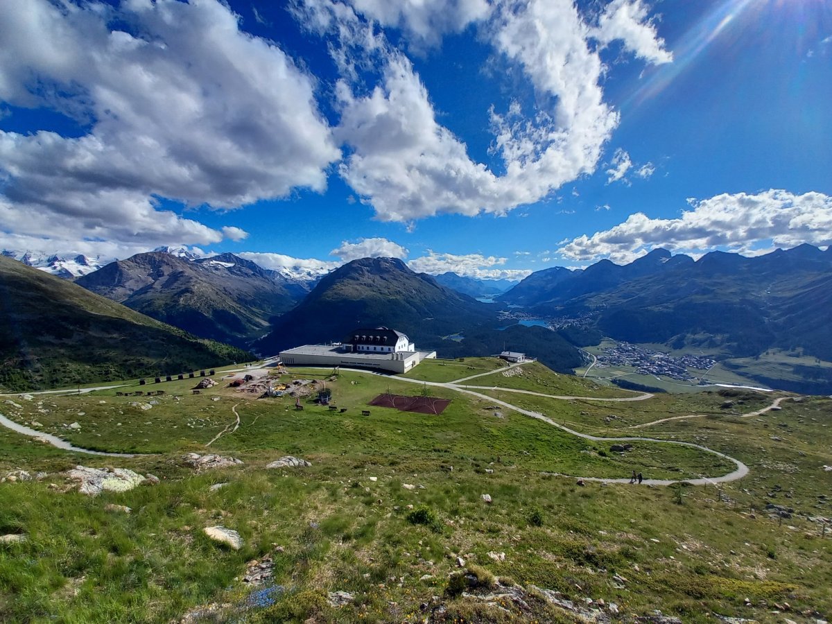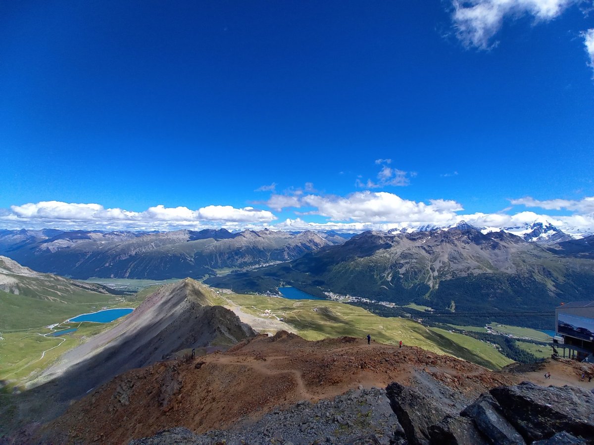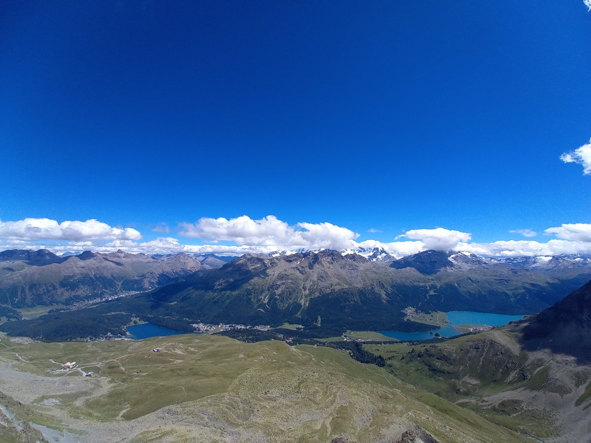 Ani na poslední 2 dny nevychází příznivé počasí v horách s jedinou výjimkou oblast Engadinu. Vydáme se proto na 320 km dlouho trasu z Bernu přes Curych a Chur do Svatého Mořice. V Churu přestupujeme na vlak do Svatého Mořice a absolvujeme první část Rhétské dráhy (na seznamu UNESCO), která zahrnuje i přejezd přes Landwasserviadukt. Během 2hodinové jízdy vlak překoná nespočet mostů a tunelů a nabízí výhledy na okolní štíty hor. Do světoznámého střediska, ve kterém se konaly 2x zimní olympijské hry přijíždíme krátce po 11:00 (5h jízdy z Bernu). V turistických informacích na nádraží ve Sv. Mořici kupujeme 2denní Engadin hiking pass (101,5 CHF), který platí na všechny lanovky + dopravu v této oblasti. Hiking pass okamžitě využíváme pro cestu autobusem č.1 do Surleje (22minut jízdy), kde přestupujeme na lanovku Corvatschbahn, abychom se dostali na vrchol Corvatsch (3303 m.n.m.). Jedná se o nejvyšší místo celé oblasti, kam lze vyjet lanovkou. Pěšky se na vrchol bez výbavy na ledovec nedostanete. Výhled je na všechny strany opět impozantní. Dominuje především pohled na okolní ledovce a nejvyšší horu celé oblasti Piz Bernina (4049 m.n.m.). Kromě restaurace s vyhlídkovou terasou je možné na vrcholu Corvatsche navštívit místní minipivovar a ochutnat jejich pivní speciál.