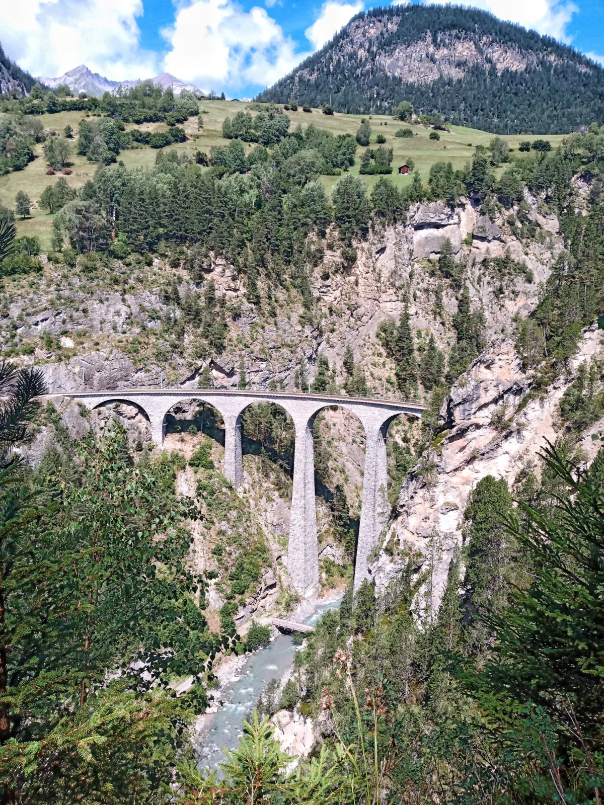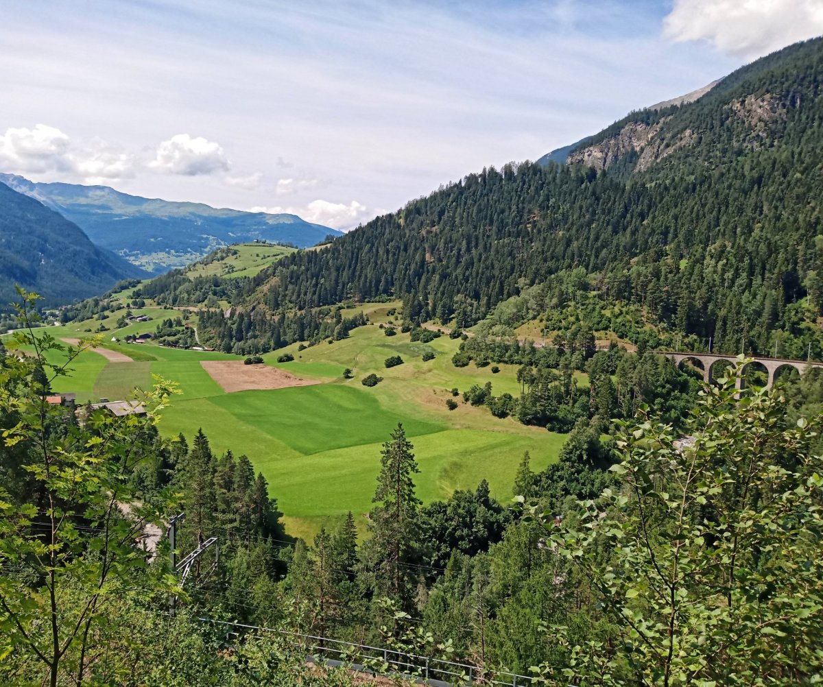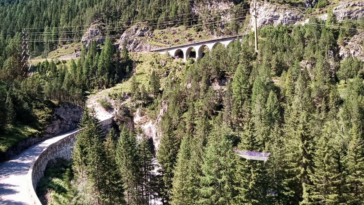 A vlak zastavuje ve stanici Klosters Platz a přes Davos pokračuje s Nádhernými výhledy do stanice Filisur . Zde vystupuji i já a jdu na vyhlídku k landwasserskému viaduktu. Což je železniční most v kantonu Graubünden ve východní části Švýcarska. Nachází se na slavné trati Albula, nedaleko stanice Filisur. Viadukt překonává údolí řeky Landwasser a od 7. července 2008 je (v rámci celé Albulské dráhy) zapsán na seznam světového kulturního dědictví UNESCO..
