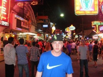 Tento den už ani nevím co se dělo za světla. Zřejmě nic extra důležitého. Čekalo se na tmu. Pozn. jooo - myslím, že proběhly nákupy v obchoďáku a že jsem se divil v nějaké ulici kolik je tu plastických chirurgií. Byli jsme už opálení, aklimatizovaní a celkově už jsme jakštakš věděli co a jak v tom úžasném Thajsku chodí. Posilněni Hong Tongem a dalším v ruce, jsme tuktukem směřovali na jasnej cíl. Bude pařba na Walking street. Ulice žila naplno. První "putyka", kterou jsme navštívili, byl velký otevřený prostor pod střechou, ale bez zdí, zakončený molem, přes jehož zábradlí se dalo koukat na moře. Procházeli jsme a udiveni koukali na řadu barů podél obou stran. Každý bar byl z venku obsypaný mladými chlapy různých věků a národů. Zevnitř byl plný mladých Thajek, barmanek i tanečnic. Holky se snažili něco si svým kumštem vydělat, ať tak nebo tak. Jak jsme procházeli, pískaly a křičely a lákaly nás zrovna k jejich bárku. S husí kůží jsme došli až na konec k molu. Tam jsme se vzájemně přesvědčili o tom co se stalo a že asi chápeme o co jde. Už smělejší jsme vykročili zpět a po cestě jsme jednu kóji vybrali. Tam jsme pár piv a drinků usrknuli. Po půl noci, už trochu pod vlivem, jsme tak různě postupovali ulicí až do 6ti do rána. Byli jsme chvíli na diskotéce, v kuřárně, čuměli jsme do obchůdků s rybama i suvenýrama, tam jsme dali pivo, na pingpong show jsme zašli. Pak přituhovalo. Kuba objevoval kouzlo ladyboys, já hecoval partu japonců, Robin zavele na striptýz. No jízda. Značně společensky unaven vím jen to, jak jsme seděli na baru a já Robinovi naznačuji něco o komplikované situaci v Praze. Mezitím co se Kuba stará o nahou tanečnici v bazénku před námi. Na cestu zpět jsme naši partu zdvojnásobili. Kalba pokračovala na pokoji. Pak nevíme asi nikdo pořádně nic.
