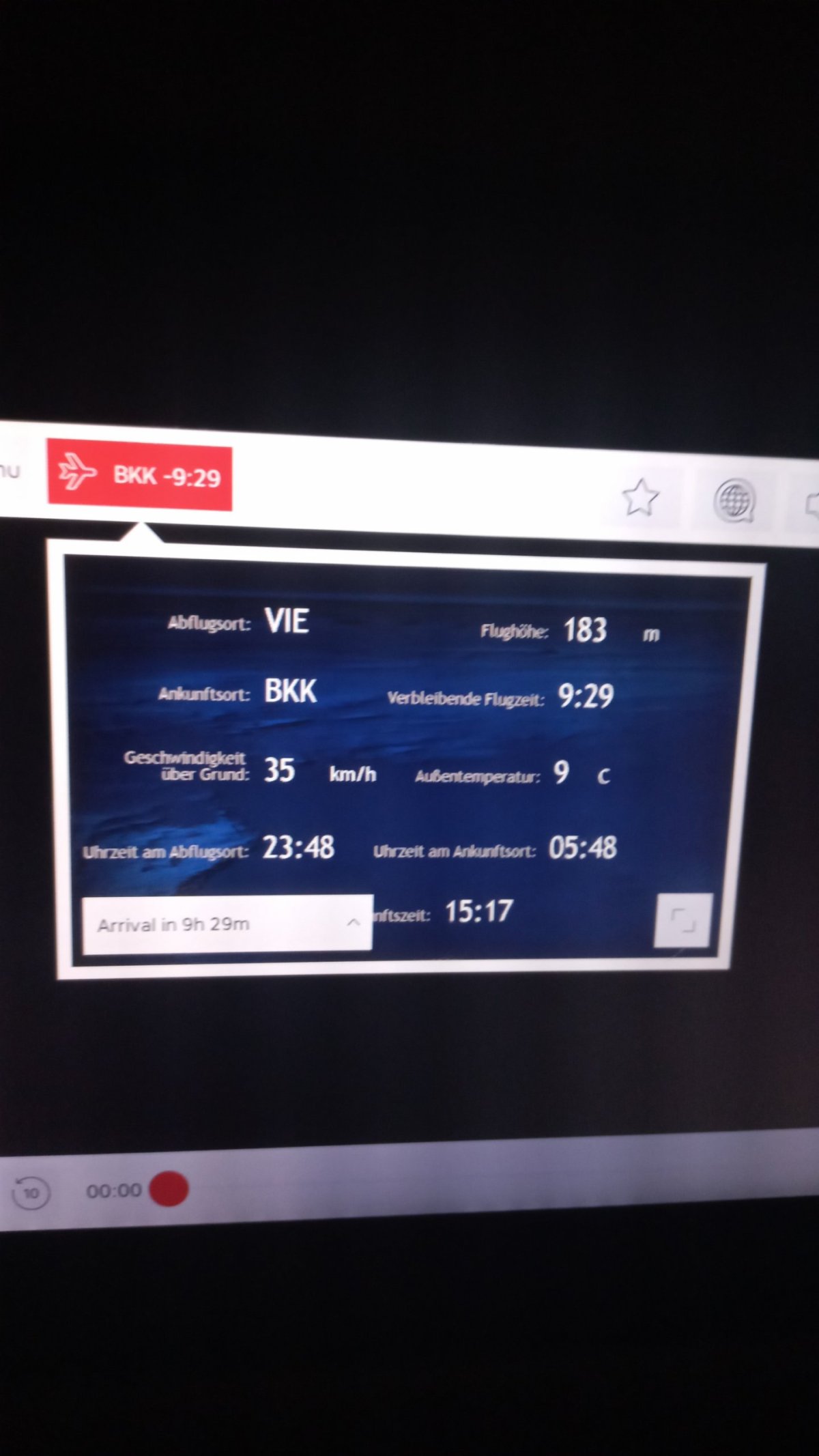 Let byl opravdu příjemný. Za letu bylo 2x výborné jídlo. Letušky nás pravidelně zásobovaly pitím (alko i nealko) a v kuchyňce se nacházela dokonce "samoobsluha" se soft drinky a krekry. Austrian opravdu mile překvapil. Letadlo dosedlo v cca 15:15, včas na přistávací dráhu v Bangkoku. Kontrolou jsme prošli hladce a velmi rychle.