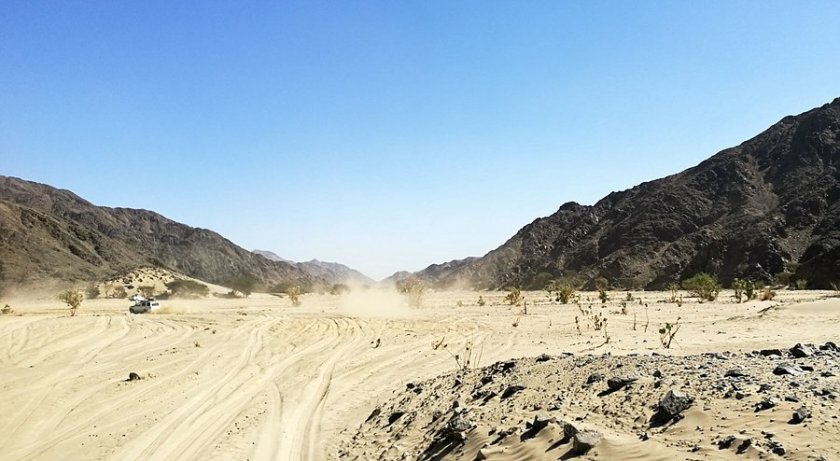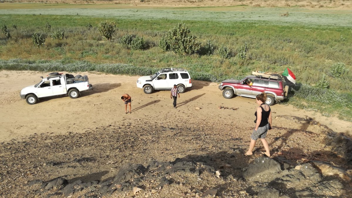 Z Chartúmu jedeme přes Port Súdán na sever k egyptským hranicím. V Mohammed Goal nás už znají, vloni nás zadrželi a 5 hodin drtili, protože nedokázali pochopit, co znamená turista a co tam asi tak může dělat. V těchto místech se s cizincem ještě nepotkali. Signál mobilního telefonu tu už dávno není, jsme odkázaní jen na sebe a naše přípravy. Sjíždíme z hlavní silnice mezi skaliska, kde si kdysi cestu prorazila obrovská řeka. Brodíme se hlubokým pískem wádím, které se mezi skalisky pohoří vlní jako had. Arabské slovo wádí znamená údolí s korytem vyschlé řeky, které se dočasně plní vodou v období dešťů. A to, že prší i zde v poušti po cestě vidíme na vlastní oči. Wádí lemují skály různých tvarů a tu a tam zdobí malá osada. Zelenkavé akácie oživí fádné barvy písku a kamení. Velké wádí se rozvětvuje, já hledám to, které nás spláchne k našemu cíly, a přes walkie talkie naviguji vůdčí vůz. Řídí Renda, i když v Súdánu je povinností mít místního řidiče, vždycky se nám poštěstí jedno auto řídit sami, tedy Renda, oni i když se místní ke mně chovají s respektem a uznáním, pořád jsem jen žena a té volant do ruky nesvěří. Občas se ztrácíme ve slepé “uličce“, někdy je nutné zapojit i všechny účastníky expedice k vyhrabání aut zapadlých v hlubokém písku, protože někdy i dobrá čtyřkolka si prostě do horkého písku sedne.