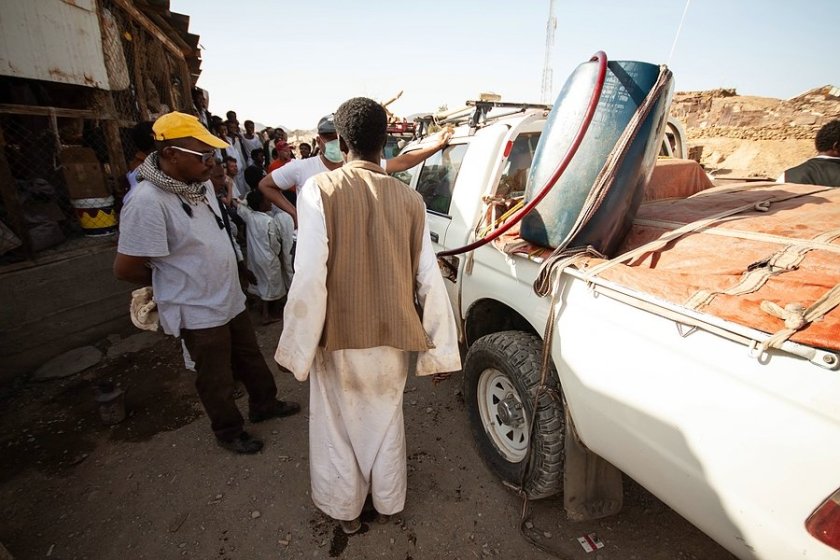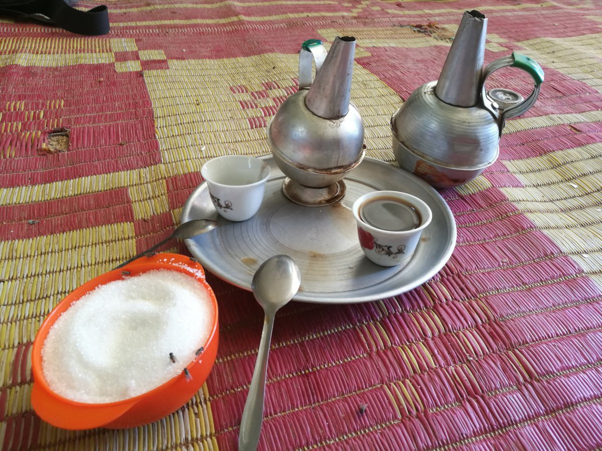 Jedeme dobrých 7 hodin něco přes 150km. Konečně sjíždíme do Wádí Oko, největší wádí této oblasti. Narážíme na první živější civilizaci, zlatokopecké město. Je rušné, obchody nabízející cokoliv, místní jídelny a kavárny praskají ve švech. Dokupujeme naftu, už jen takový nákup pohonných hmot pomocí hadičky a velkých barelů je pro mnohé z nás velkým zážitkem. Je vedro, dáváme si k obědu grilované kuře, zeleninový salát, fuul s pekelně pálivou šatou a chléb. Před odjezdem nesmí chybět ani Jebanah – vynikající súdánská káva. Pokračujeme směrem, kterým nás zlatokopové navedli. Zlatokopeckých osad a měst je v pohoří Rudého moře a celé Núbie mnohem více. Súdán a především tato oblast, je velmi bohatý na zlato s jehož těžbou zaujímají druhé místo v Africe a 9 ve světovém žebříčku. A toto obrovké bohatství dalo jméno i celému severu Súdánu – Núbie, země zlata. samotný název Núbie – země zlata, vychází z bohatosti oblasti. Informace o těžbě zlata v této oblasti pocházejí z období 3-4000 před Kristem, tehdejší Dynastie, králové a faraóni s nim obchodovali a vyváželi jej do světa. Zlato bylo součástí velkých pokladů se kterými byli vládci pohřbíváni, někteří neopoměli ze zlata ani lodě na cestu smrti.