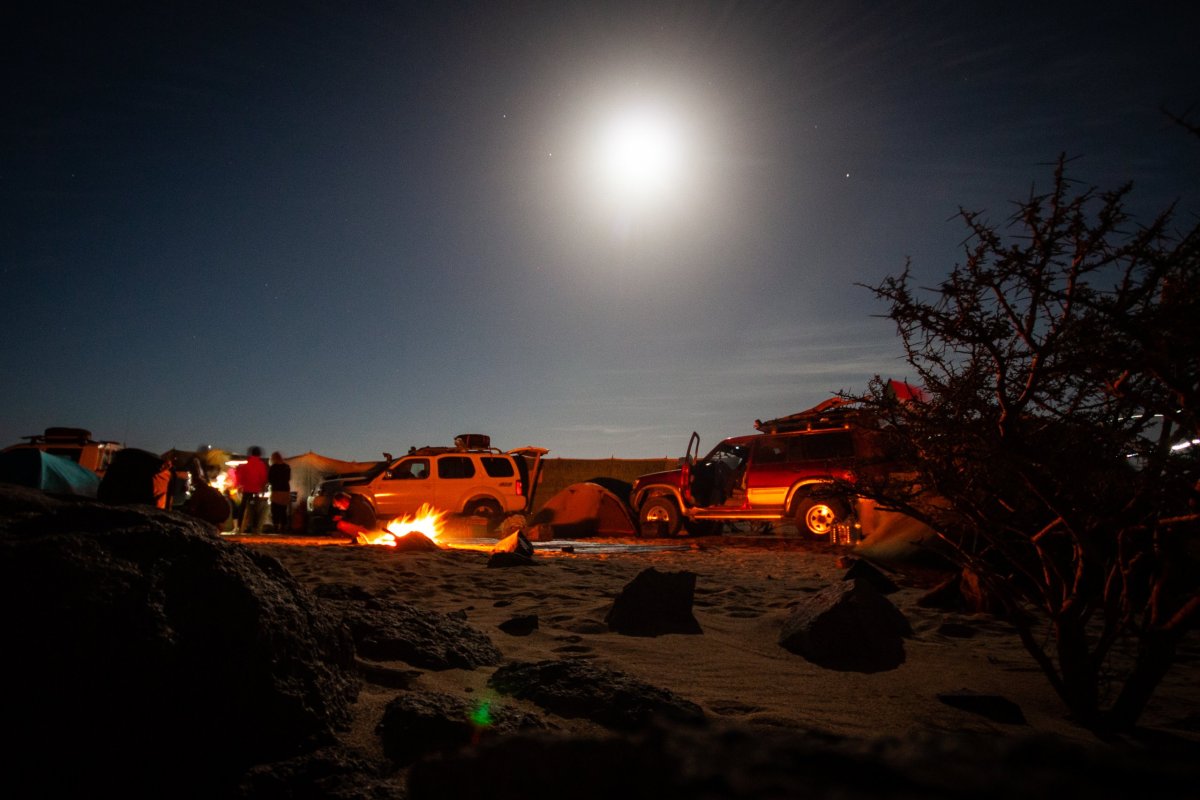 Po dalších dvou hodinách jízdy se před námi rozprostírá zelenavé údolí. A v úchvatném západu slunce se zahalen v závoji písku a prachu k nebesům hrdě tyčí Gebel Magardi, dominantní hora ve Wádí Diib. Z dálky vypadá jako moréna plazící se ven z díry, ale v souvislosti s archeologickými nálezy jej spíše popisují jako tvar falusu tyčícího se nad zemí, charakterizující plodnost. V jejím klíně je místo, které domorodci pojmenovali Nurayet, Bir Nurayet. Je pozdě a z dlouhé jízdy jsme unavení. U praskajícího ohně si pochutnáváme na slavnostní večeři.