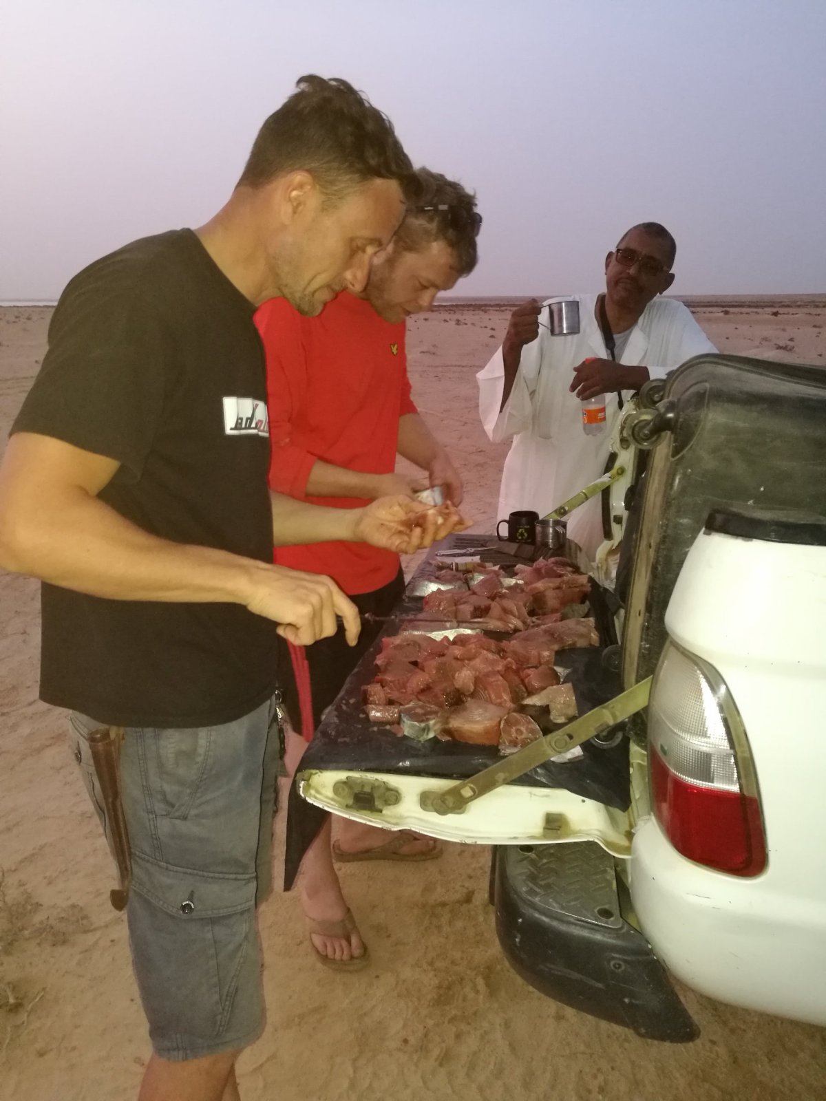 Cítíme se jako dobrodruzi několik desítek let zpět. Potkáváme vykulené domorodce kmene Beja, se kterými se člověk nedomluví ani arabsky. Myslím, že jsme pro ně byli jako přízrak, a ještě jejich vnoučatům budou vyprávět o třech autech nacpaných bílými tvářemi řítících se do nemilosrdné pouště. Beja obývá právě východní část Súdánu, je to drsný kmen se statnými a nebojácnými muži, není divu, že si je Britové najímali do armády.