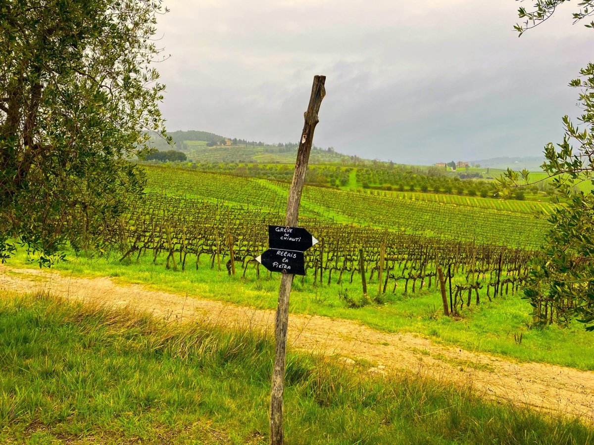 Šikovným výchozím bodem je městečko Greve in Chianti, které leží asi 30 km jižně od Florencie. Greve je srdcem vinařské oblasti Chianti Classico, ze které pochází nejvíc ceněná toskánská vína. Z náměstíčka vychází několik značených okruhů, které jsou dobře vidět i na mapy.cz. Další užitečnou inspiraci jsme našli na stránkách visitchianti.net a alltrails.com („Best Trails in Greve in Chianti“). Chodí se většinou po širších, asfaltových nebo zpevněných cestách, které se různě proplétají vinicemi, loukami, olivovými háji, podél starých klášterů a vesnic. Na části z nich jezdí i auta, doprava ale není nijak veliká.