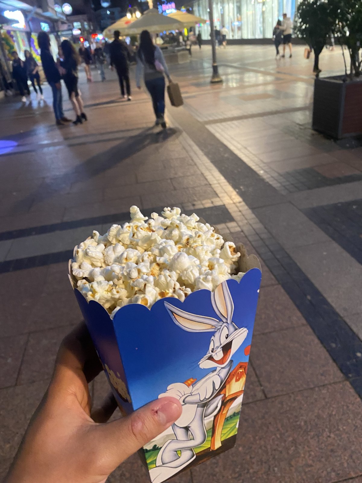 Po 15 minutách chůze po nábřeží jsem dorazil do centra, kde bylo opravdu živo (bylo úterý). Koupil si popcorn za 100 RSD a pokračoval do ubytování.