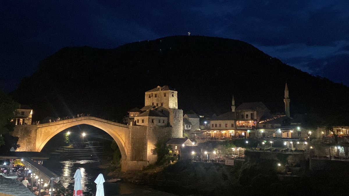 Mostar je jedno ze známých měst Bosny, podle fotky "Stariho" mostu ho pozná asi každý minimálně z TikToku. Mně zaujal právě ten most, Križ na gumu (památník nad Mostarem) a jak jsem zmiňoval v úvodu, že něco vzniklo... Právě zříceniny z bosenské války by mohly být pro někoho lákadlem. Mně zaujala v centru města bývalá budova lublaňské banky.