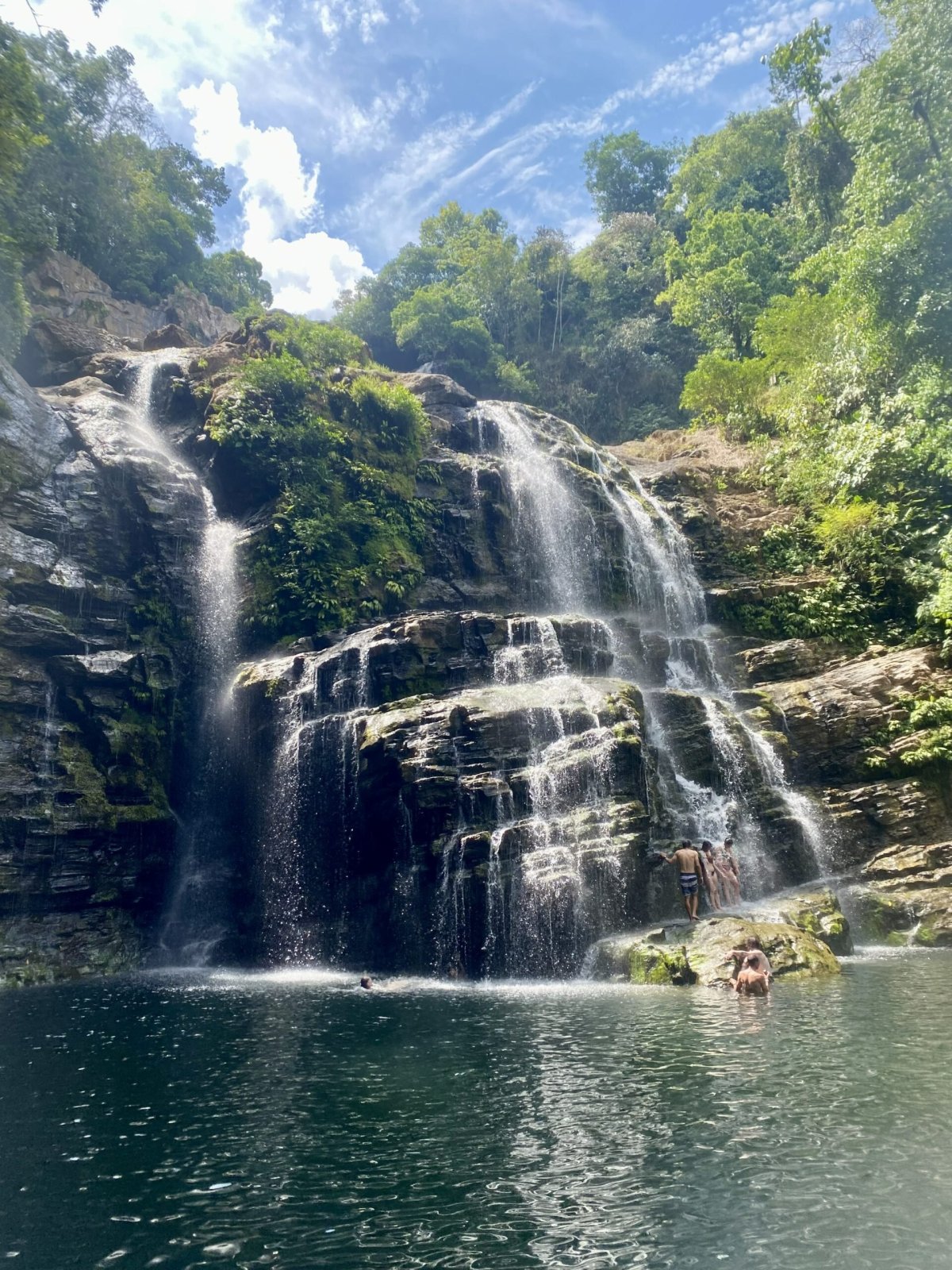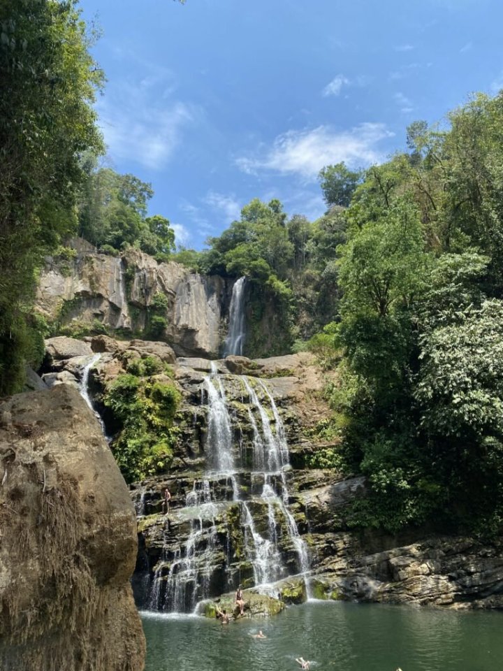Den po našem příjezdu jsme však vyrazili na vodopády Nauyaca, které se staly jedním ze zlatých hřebů celé cesty. Po absolvování pěkné čtyřkilometrové procházky lesem se před námi otevřela neuvěřitelná nádhera: vodopády byly skutečně velkolepé. Netrvalo nám to dlouho a už jsme se pod nimi koupali. Pod spodními vodopády je velké a hluboké jezírko, do kterého můžete bezpečně skákat z prakticky libovolných výšek. V jednu chvíli dokonce dorazili místní zaměstnanci a pomáhali lidem vylézt do výšky cca 10 metrů, aby si mohli skočit odtud.