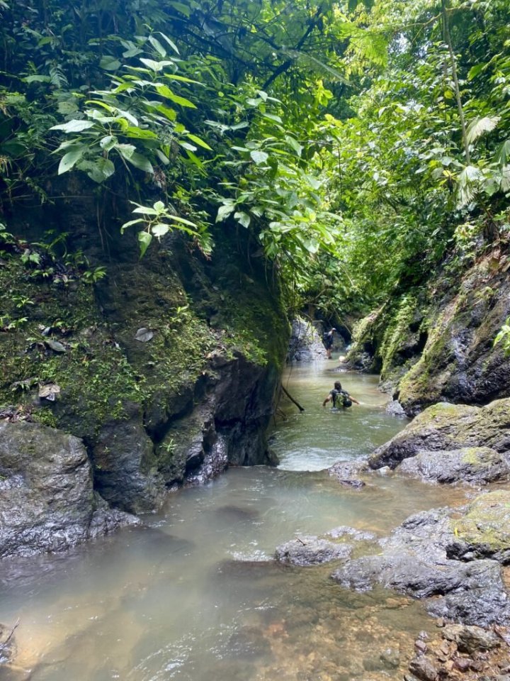 Náš poslední den jsme potom využili ke canyoningu v Corcovadu. Zvolili jsme canyoning namísto tradičního celodenního treku Corcovadem, který však máme rozhodně v plánu příště. Při canyoningu procházíte kaňonem řeky v Corcovadu - jedná se o dost dobrodružnou aktivtu, při kterého rozhodně suší nezůstanete, a vyzkoušíte si během ní i skákání do vody a slaňování. Přesto je v Corcovadu vhodná pro úplné začátečníky.