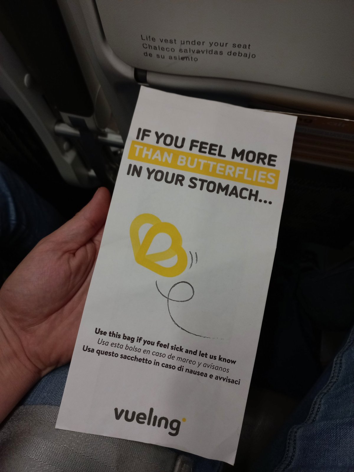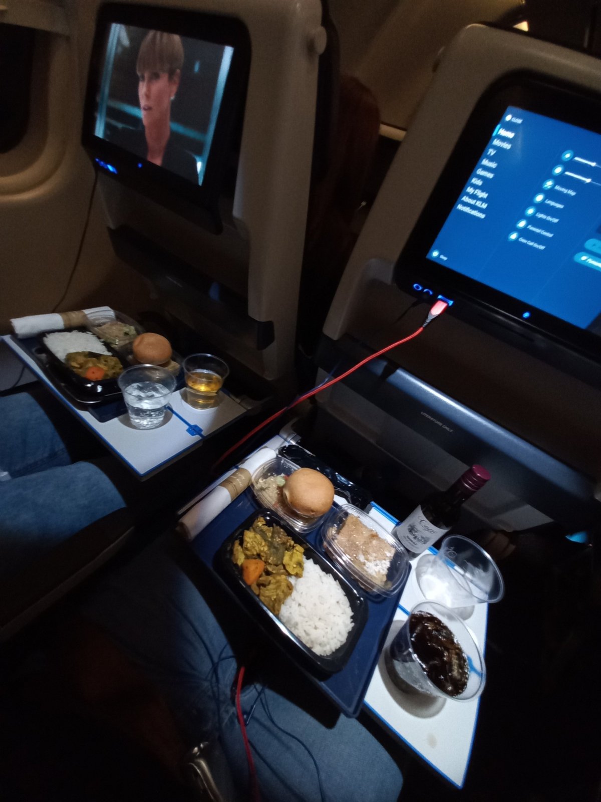 Jak jsem psal výše, let byl příjemný a utekl velmi rychle. Jelikož jsem koupil z Amsterdamu letenky přímo do Prahy u Vueling, nevyužili jsme letu od KLM až do Berlína. Vtipná věc je ta, že nám ten let od KLM do Berlína zrušili, takže jsem využil hned nároku na odškodnění a řeším náhradu ve výši 250eur+cena letenky +nějaké ty účtenky za dlabanec v Amsterdamu. Let s Vueling jsme měli až ve večerních hodinách, takže jsme čas využili na prohlídku liduprázdného Amsterdamu. P.S.: níže si všimněte pytlíku, který slouží, když je vám v letadle nevolno a zajímavého "menu" od místních houbařů.