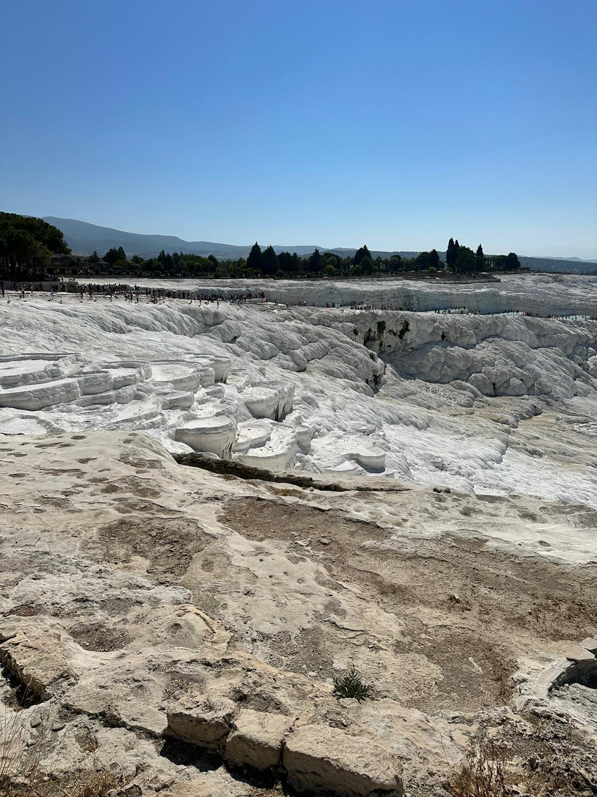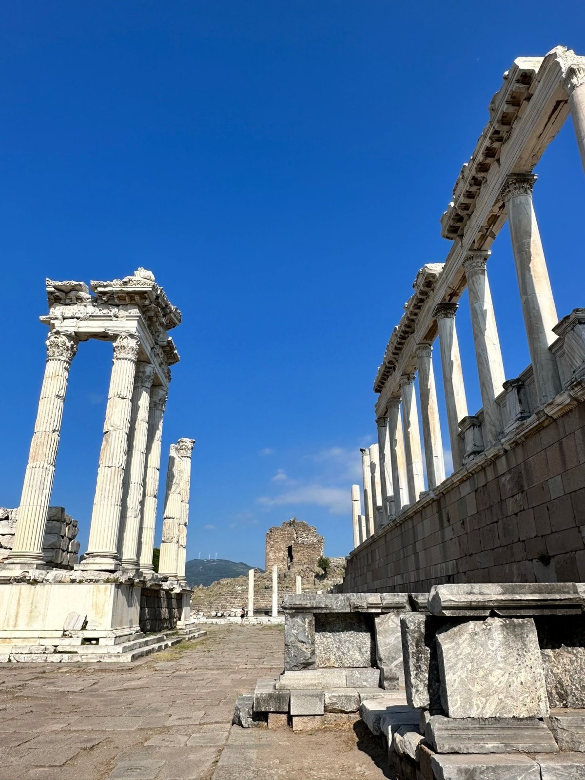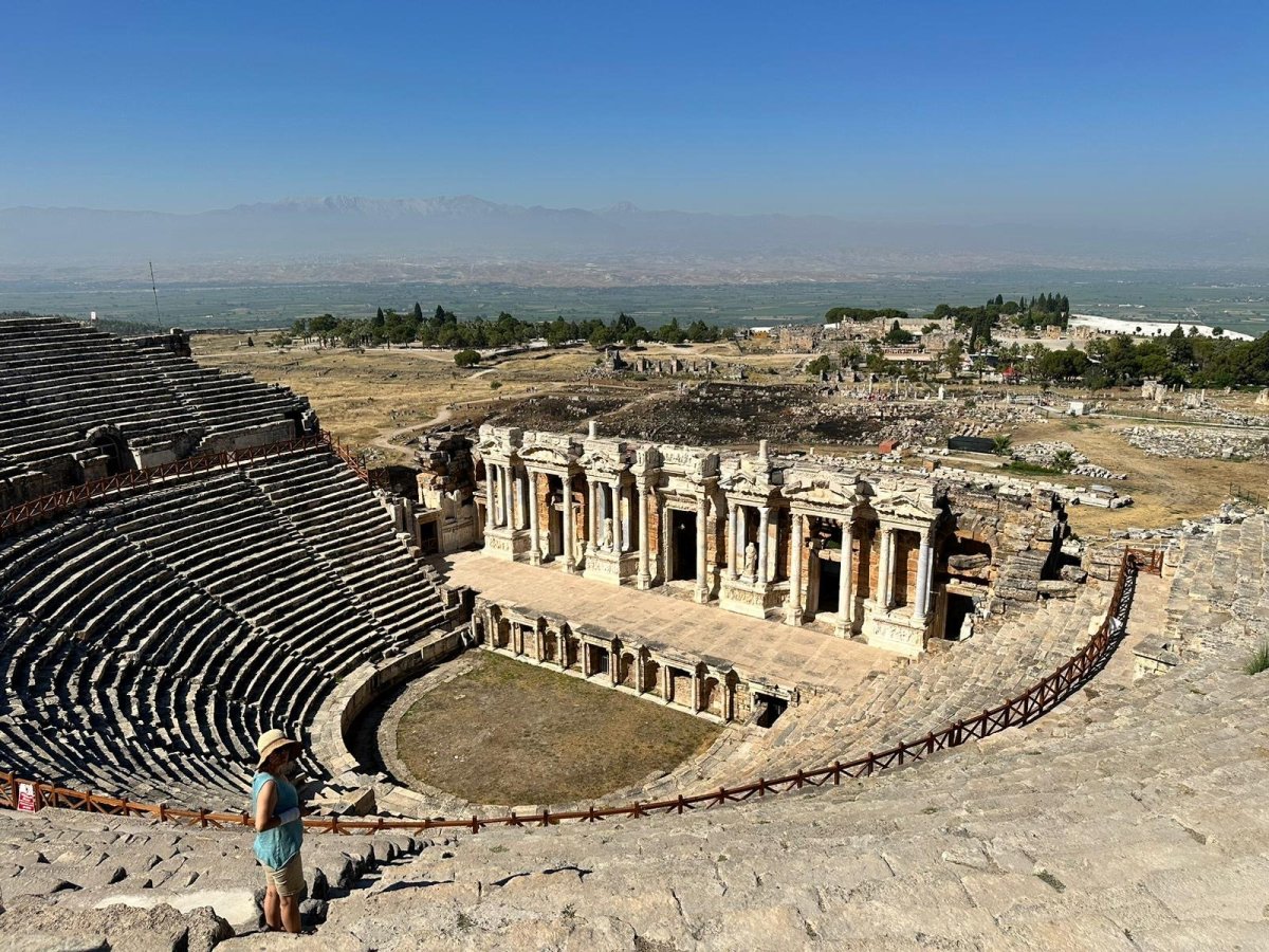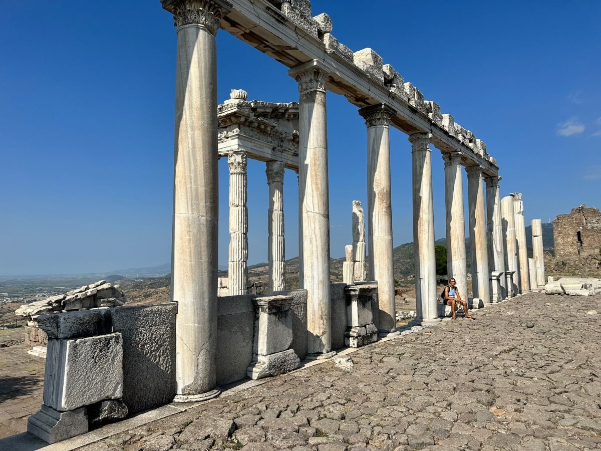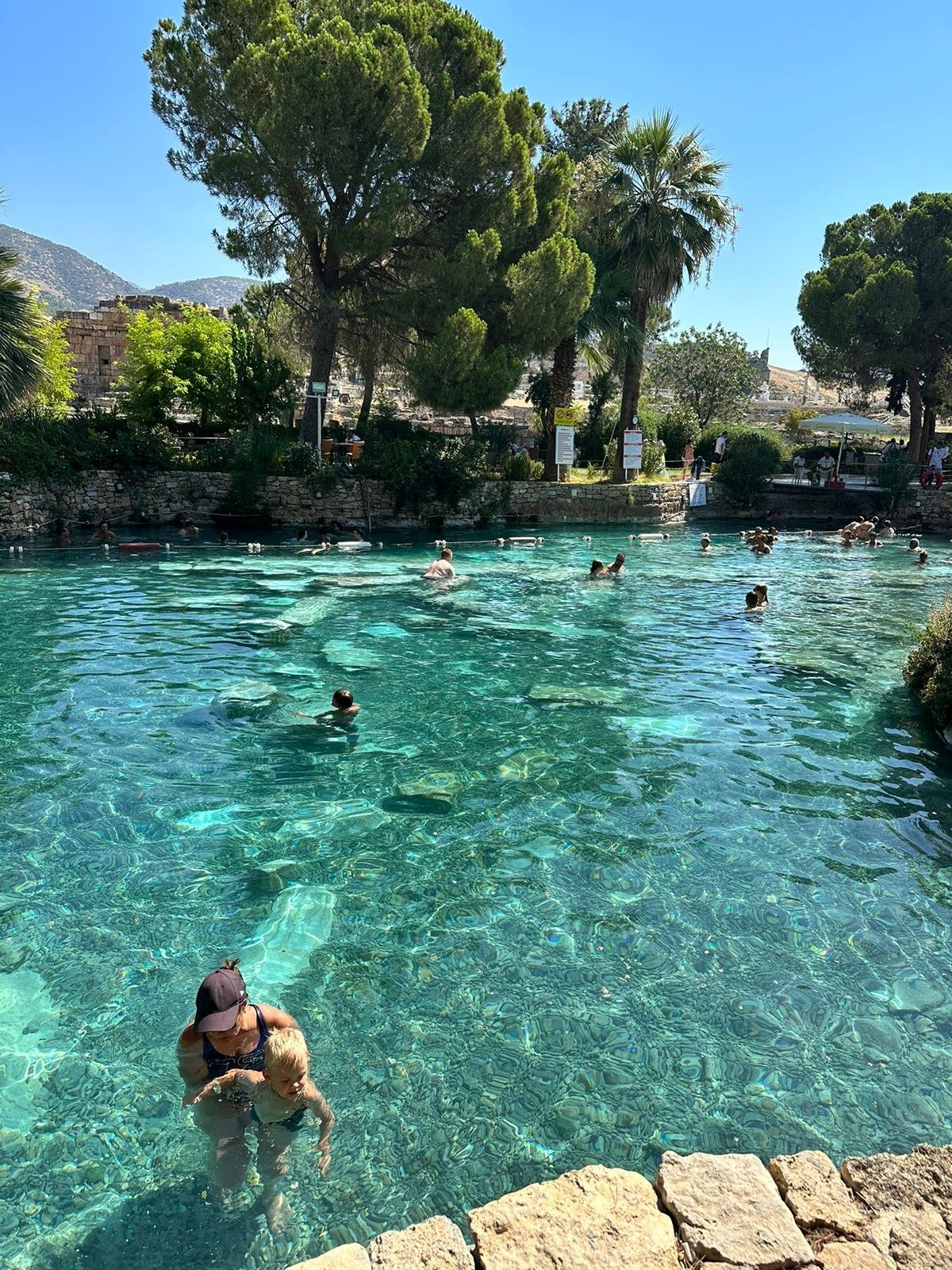 A pak je tu jídlo. V Istanbulu musíte zkusit všechno – od Balik Ekmek (čerstvá ryba v bagetě přímo z lodi u mostu Galata) přes pečené kaštany až po silný turecký čaj v malých skleničkách ve tvaru tulipánu, který pijete na každém rohu. Bohužel jsme nestihli podzemní cisternu Yerebatan a výhled z Galatské věže. Z Istanbulu jsme se stočili k Burse, prvnímu hlavnímu městu Osmanů. Pod horou Uludağ jsme obdivovali „Zelenou Bursu“ a samozřejmě ochutnali legendární Iskender kebab. Pamukkale, ty bílé a bohužel vyschlé, travertinové terasy nebyly tak tyrkysové, jak jsem zahlédla na pohlednici. Hned nad nimi jsme prozkoumali trosky lázeňského města Hierapolis a zakončili jsme to koupelí v Kleopatřině bazénu, kde plavete přímo mezi antickými sloupy. Příjemné osvěžení. Poslední den jsme zaslouženě plavali v moři v krásném modrém městě Bodrum. Turecko nás dostalo svou rozmanitostí. Jeden den stojíte v antickém divadle, druhý se prodíráte davem v Istanbulu a třetí se máčíte v termálech. Každopádně plánujeme Turecko objevit jednak v jeho středu, a jednak daleko na východ. Je to neuvěřitelná země.