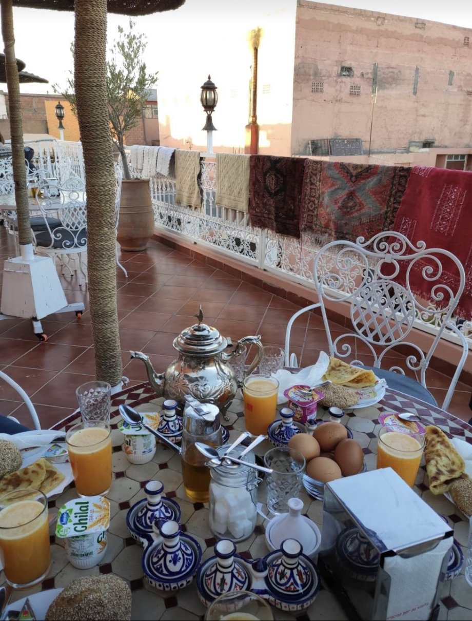 Hned ráno jsme spěchali na snídani, která byla moc příjemná, na střeše hotelu a hlavně v ceně ubytování :) Balení, rychlá sprcha a neztrácíme čas, takže šup půjčit auto. I zde se dá smlouvat. Z asi 4.500Kč na týden jsme nakonec pořídili za 3.000Kč včetně pojištění. Na co si ale dajte pozor? Policie! Je jich tam snad víc jak civilistů, takže jezdi podle předpisů, buďte všichni připoutaní, pořád u sebe měj pas, žádné pití na veřejnosti atd. Nás to za ten týden stálo tři pokuty za 150 MAD - nic hrozného, ale je to zbytečné.