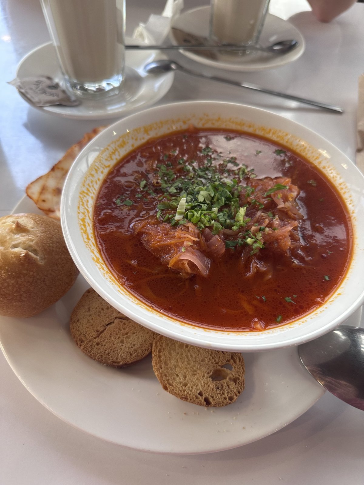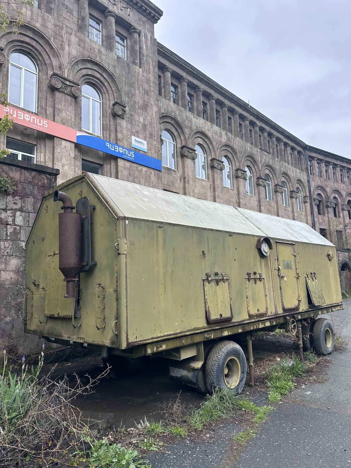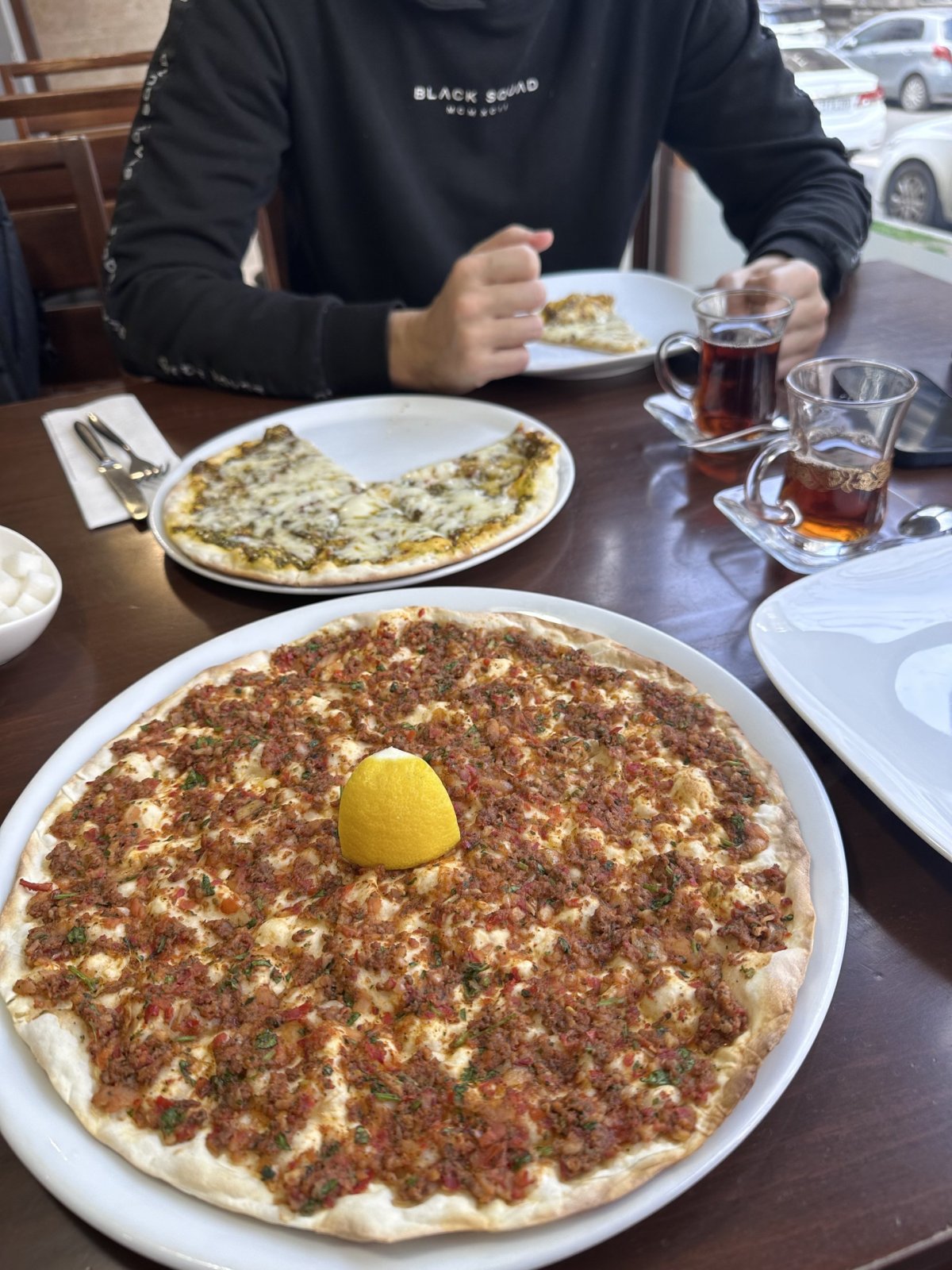Brutalismus kam se podíváš. K obědu nás lákalo ochutnat něco místního. Čaj a lahmajun bylo to pravé ořechové.