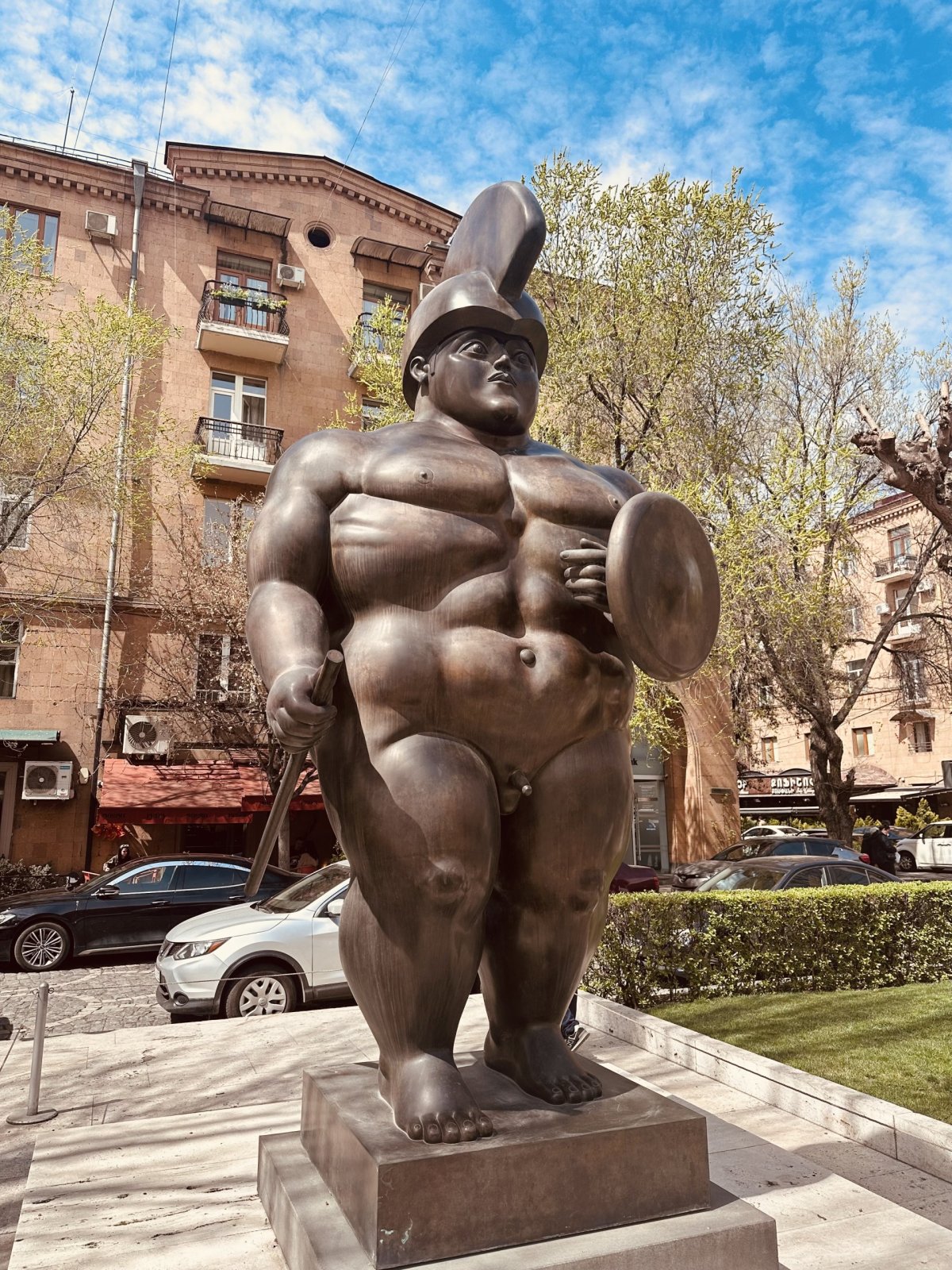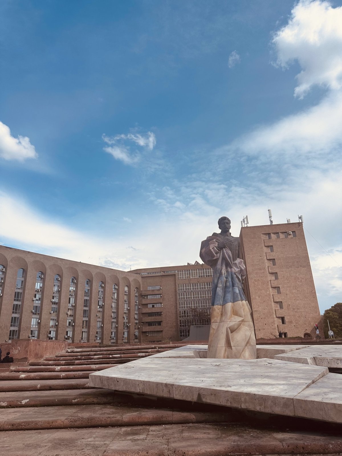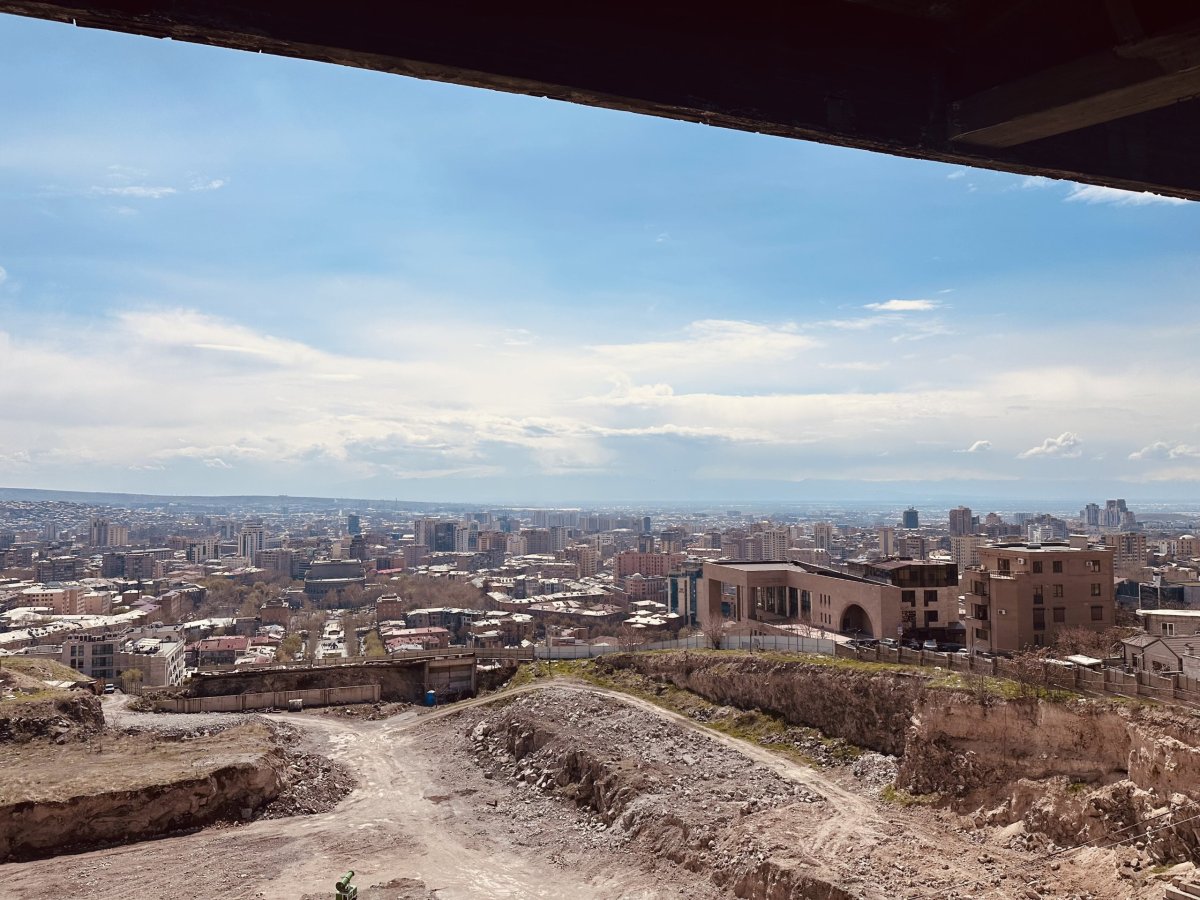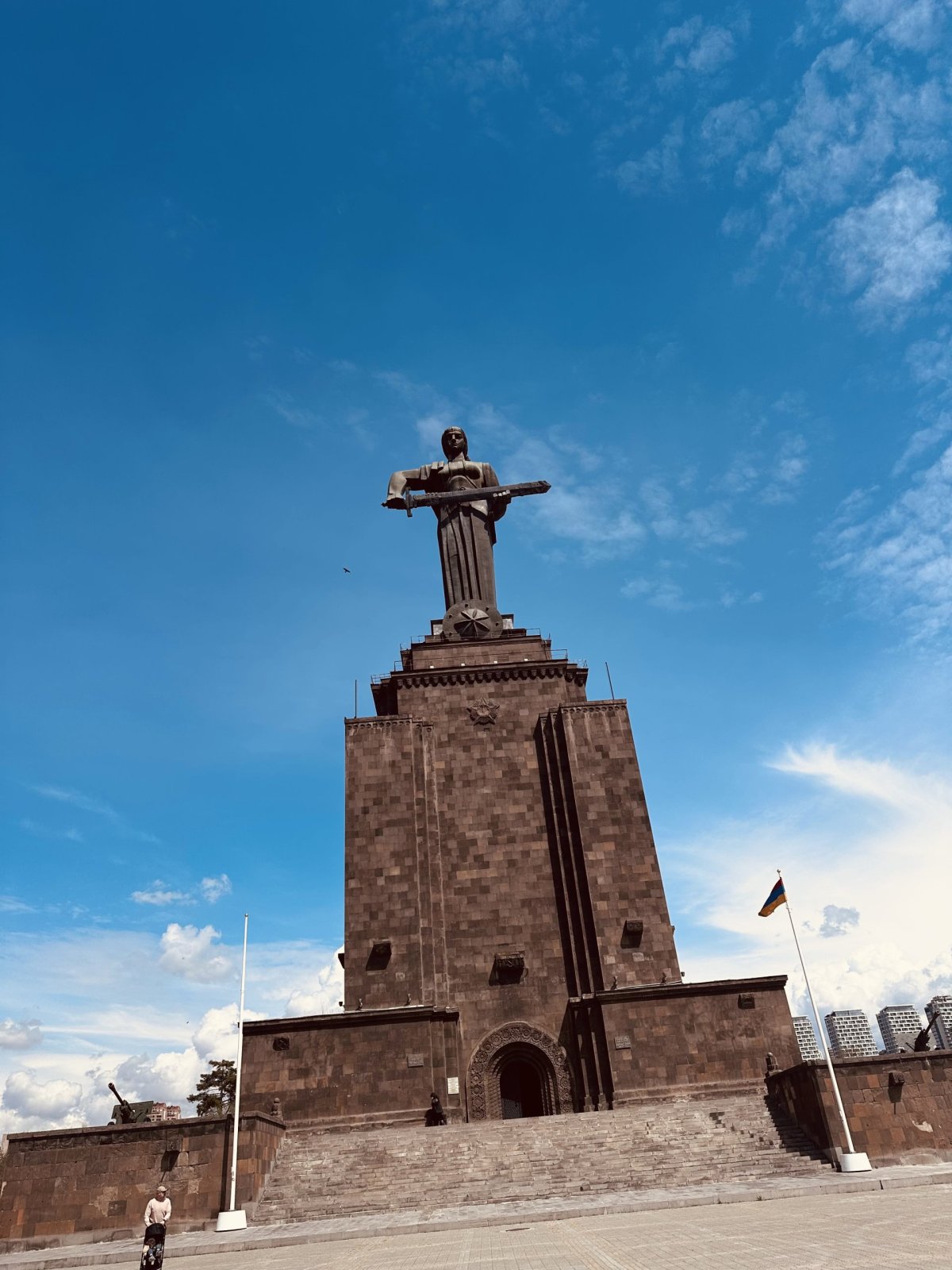 Vystoupali jsme až nahoru přes Kaskádu a jako na dlani jsme měli celý Jerevan. Kousek od vrcholu se nachází obrovská socha Matka Arménie. Samozřejmě s výhledem na takovou malou Matějskou pouť.