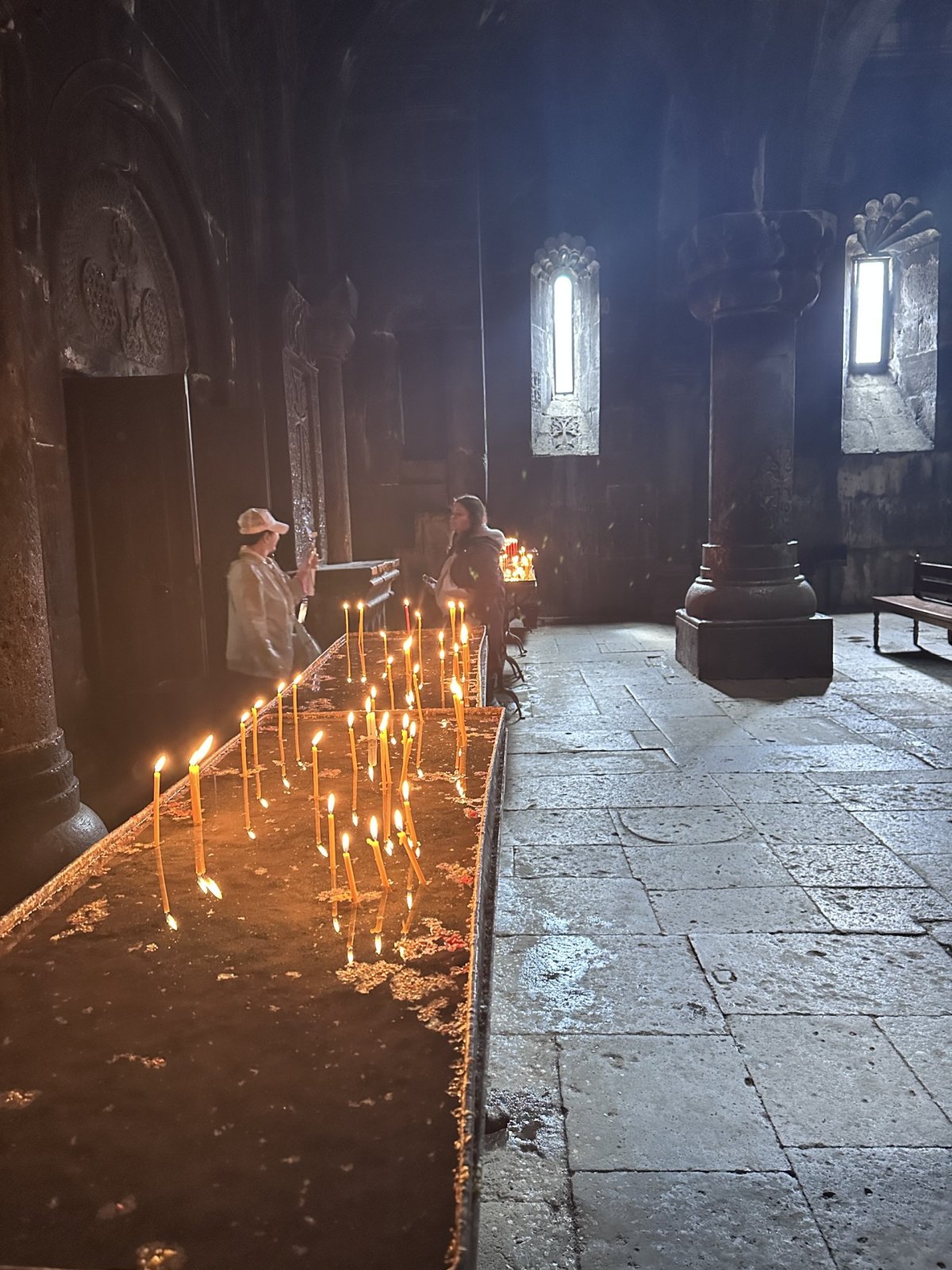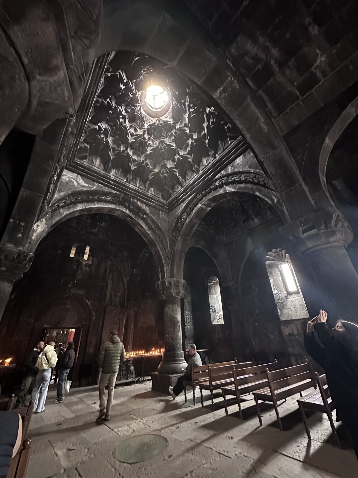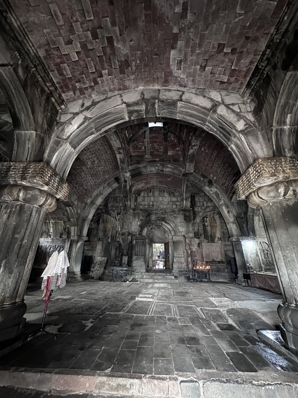 - Dva kostely: V areálu najdete dva hlavní kostely – Surb Arakelots (Svatí apoštolové) a Surb Astvatsatsin (Svatá Matka Boží). Uvnitř nečekejte žádné zlato ani barokní kudrlinky. Jsou to syrové, kamenné prostory, kde jedinou ozdobou jsou svíčky a starobylé chačkary (kamenné kříže).