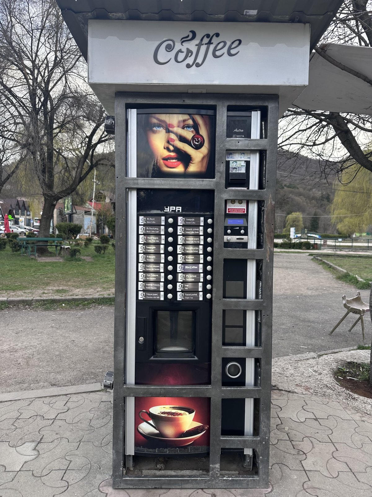 Diližan: Arménské Švýcarsko. Stačí projet tunelem a svět se změní. Suché hory vystřídají hluboké lesy. Město Diližan bylo zvláštní. Celkem mě zaujalo, že všude kudy jsme jeli, ať město, vesnice, všude stojí automaty na kávu. Nevím proč, přišlo mi to vtipné.