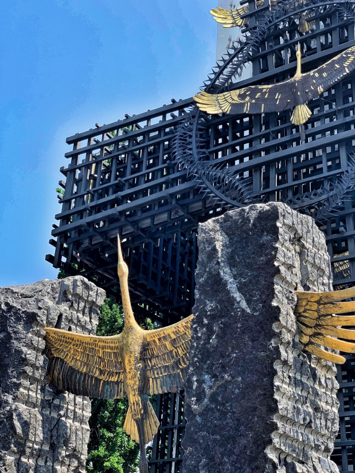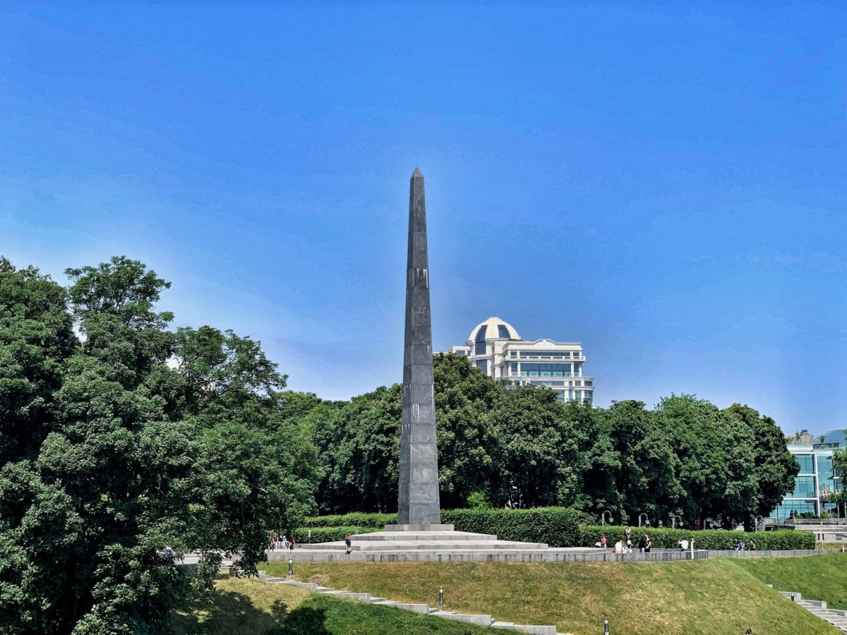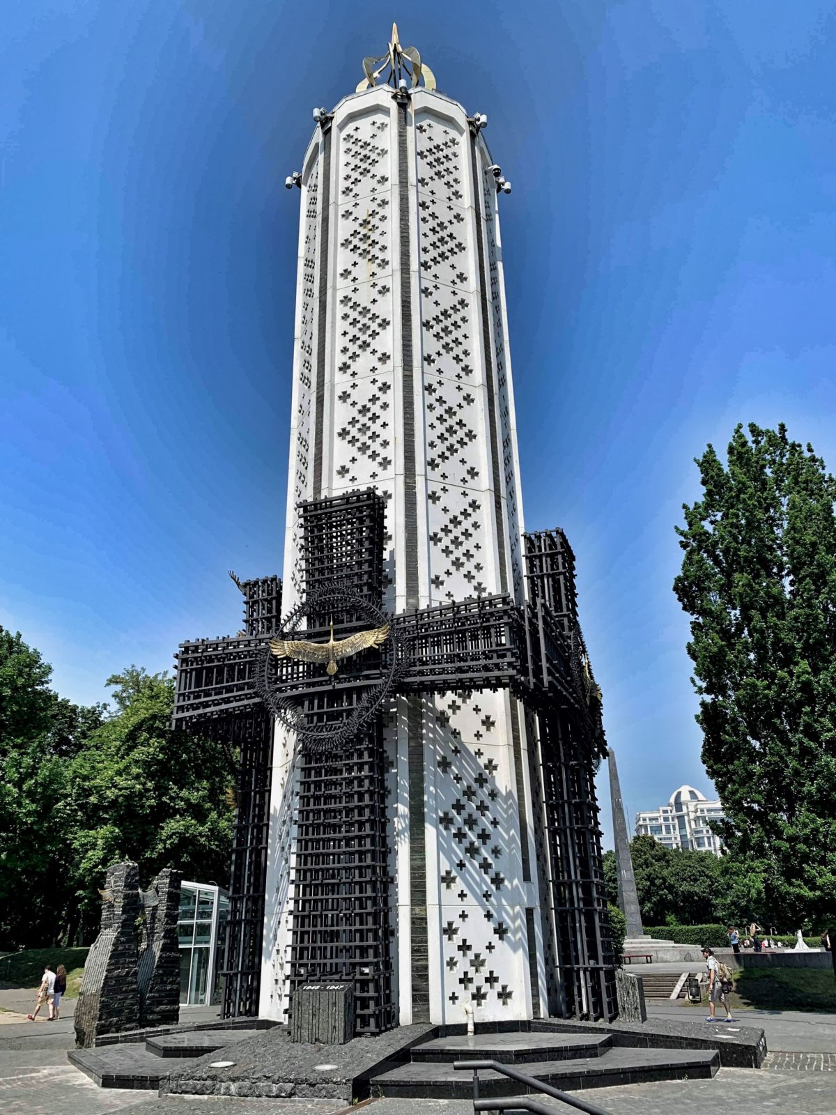 Z Lávry už je to jen kousek k soše Matka Vlast nebo taky Rodina Mat. Socha je obrovská, dokonce je vyšší než Socha Svobody. Tu jsem teda ještě neviděla, ale věřím tomu! Podstavec má 40 metrů a samotná socha přes 60 metrů. V jedné ruce ještě nedávno svírala meč a v druhé štít se srpem a kladivem. Což bylo docela zvláštní, protože podle ukrajinských dekomunizačních zákonů se nesmělo nikde na Ukrajině (mimo města Černobyl) ukazovat symboly SSSR (jako vlajka, srp s kladivem, rudá hvězda, atd.). Taky zde nesmí znít sovětská hymna, všechny sochy Lenina a Stalina byly zničeny nebo schovány a spoustu vesnic, měst a ulic se muselo přejmenovat. Nyní Matka Vlast drží už jen štít a meč, každopádně socha určitě stojí za návštěvu, je to jedno velké wau s pusou dokořán a hlavou v permanentním záklonu! Kolem dokola sochy se nachází venkovní expozice muzea, takže tanky, vrtulníky, stíhačky, letadla.