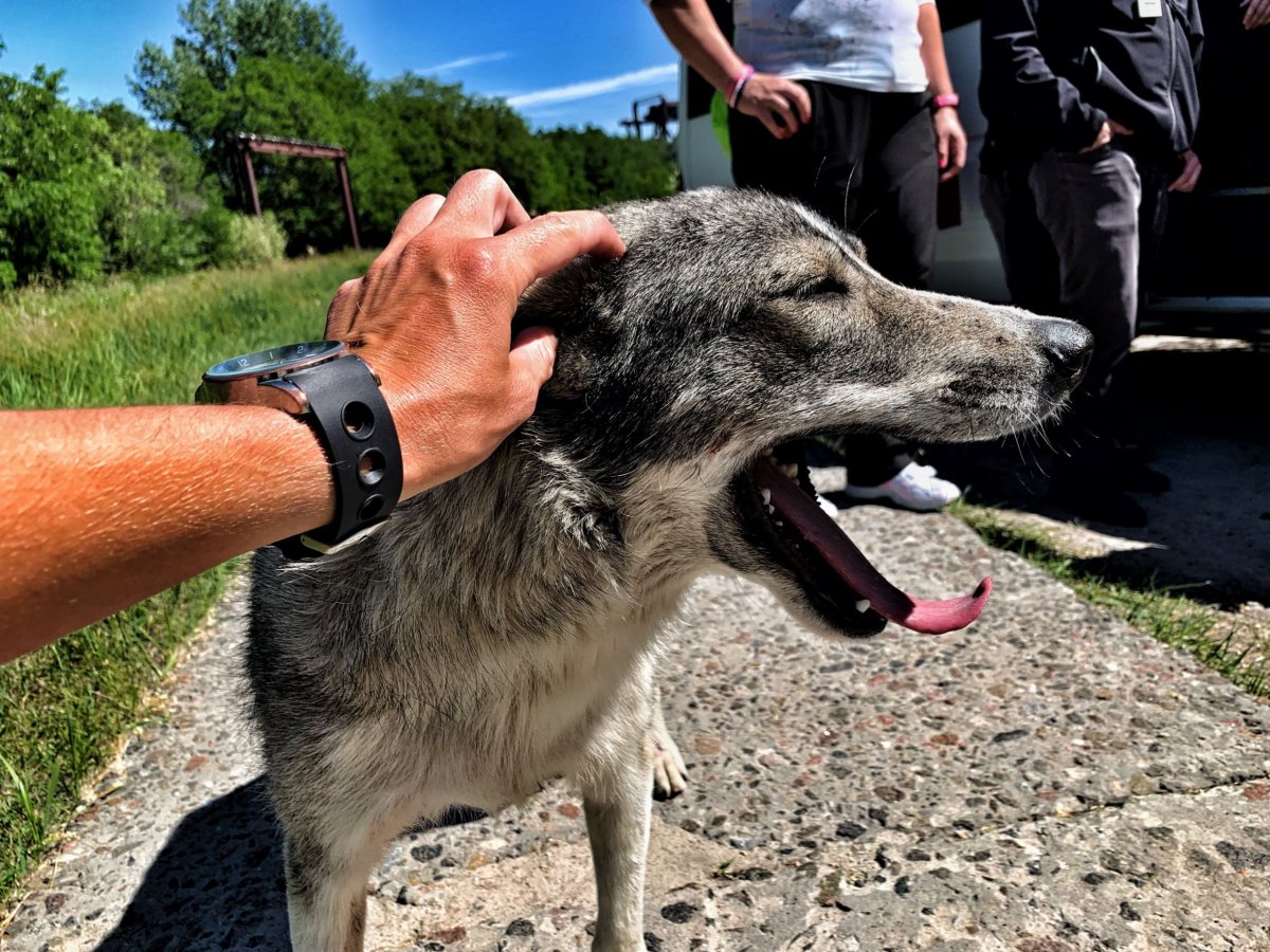Po obědě jsme konečně viděly to, o čem mluvila průvodkyně na začátku cesty – místní psy. Jsou neuvěřitelně hodní a čekají před jídelnou na turisty, kteří se s nimi podělí o zbytky oběda. Musím říct, že jsem v sobě chvilku musela překonávat vnitřní boj, zda pejska pohladit… Jednak je nehladil nikdo, ale taky jsme byly několikrát upozorněny, že se v zóně nesmíme ničeho dotýkat, odkládat věci, opírat se o cokoli, cokoliv nám upadne – máme nechat ležet na zemi… Člověk je z toho trošku zblbnutej.. Každopádně když se na vás podívají oči toho psa (a jste magor jako já🙈), neodoláte. Takže nechyběla troška canisterapie na závěr dne…